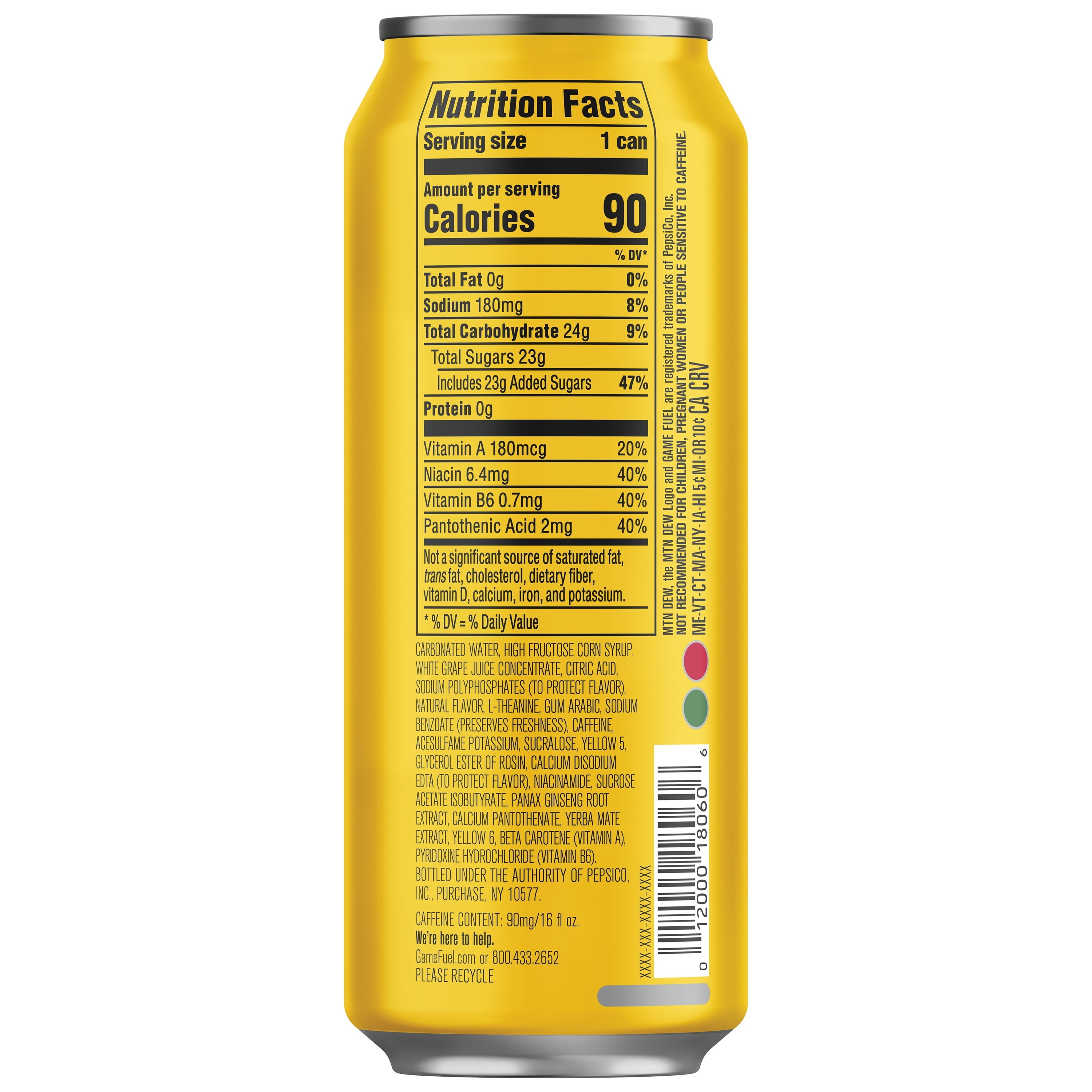 Designed for Gaming, MTN DEW GAME FUEL is specially developed to give you the boost you need with ingredients shown to help improve accuracy* and alertness*. The can features a tactile grip to help prevent it from slipping through your fingers, and a re-sealable lid designed for one-handed opening and closing – so you can power up while staying in the game. *Caffeine in combination with theanine has been shown to improve accuracy and alertness