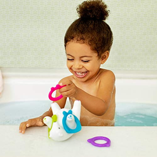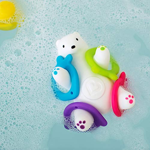 Teachable moments are everywhere — even in the bath! Turn your little one’s tub time into a fun learning experience with Arctic, a floating bath toy that’s half ring toss, half stacking game, and 100% adorable. Toddlers can count rings, toss them onto its legs, or stack on the bear’s belly for triple the fun. They’ll stay engaged in the bath while building hand-eye coordination, developing their motor skills, and creating silly memories with mom and dad. Stack, toss, giggle!A bath game that brrr-ings on the fun!
