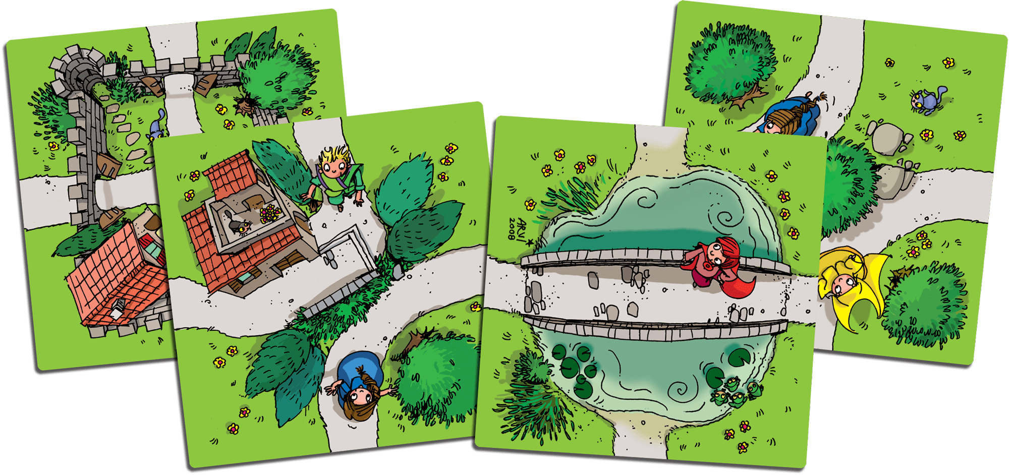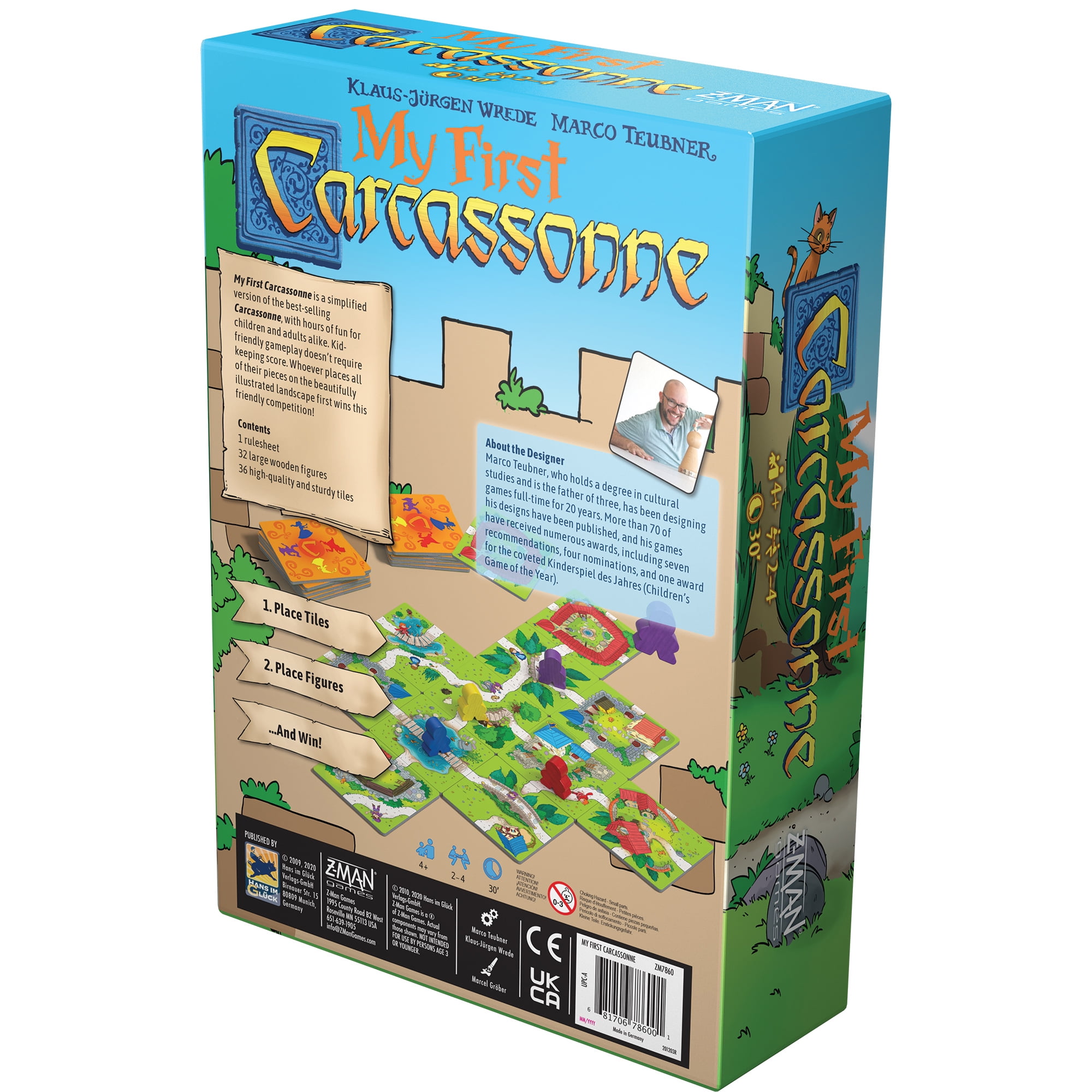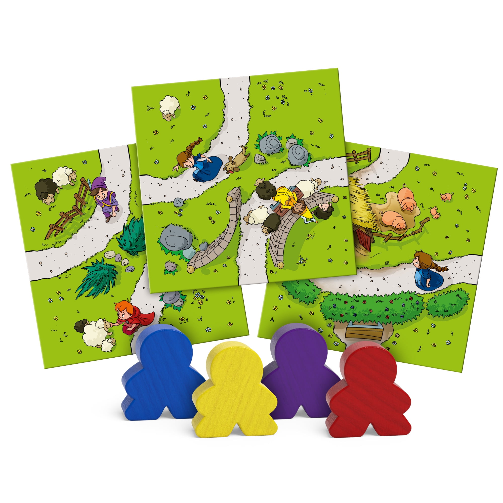 The streets of Carcassonne are filled with kids who are trying to catch the animals set loose for the festival. The city has never been so alive! This version of the modern classic Carcassonne has been adapted to allow players of all ages to play together. No need to count points! Each turn you place a tile to build Carcassonne. When you close a street with one or more kids of your color you get to put your pawns on the board. Be the first to place all of your pawns to win the game!