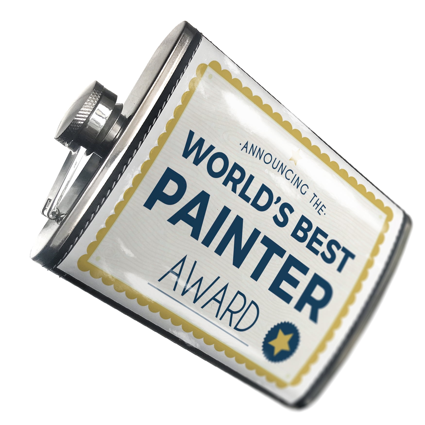 QUALITY: Our leather wrapped Outdoor Adventure Flasks are built strong enough for the outdoors. We manufacture all our flasks out of heavy duty, thick, Premium High Quality Food Grade 18/8 304 Stainless Steel, which makes them perfect for taking with you anywhere. Rust and corrosion resistant, naturally ECO-FRIENDLY, BPA-Free and tested leak proof. The exterior has been wrapped with our beautiful, faux leather so no animals were injured in producing this product..:) PERFECT GIFT: Celebrate the Fourth of July, Labor Day, Thanksgiving, Veterans Day, and every other Holiday or Occasion, including; Bridal Parties, Graduation, Fathers Day, Parties, Sporting Events, Cookouts, the Golf Course, Camping, Road-trips, that hard to shop for person in your life, or just treat yourself (perfect for anywhere you’ll need a quick ‘pick-me-up’). DISCREET AND CLASSY: The flask, is perhaps one of the greatest unsung fashion accessories an individual can own. Whether carrying, life sustaining H2O on your next hike through the countryside or just the right amount of your favorite Whisky, Premium Kentucky Bourbon or beverage of choice, in front of a campfire, on an otherwise nippy evening, hip flasks are uniquely designed with a curved shape, to fit closely to the human body. Making them discreet, lightweight and easy to carry. Printed in Atlanta GA, Thank you for supporting small business your NEONBLOND team! Indoor/Outdoor Premium, Food Grade 18/8 304 Stainless Steel Flask; Beautiful non-slip "faux" leather wrapped flask; High Quality Corrosion/Rust Resistant and Laser Welded Seams, Tested Leak Proof; Integrated, Swing Arm Lanyard Cap (Captive Top) – Never lose your flask cap again by NEONBLONDMeasures approx.NEONBLOND Flask Worlds Best Painter Certificate Award