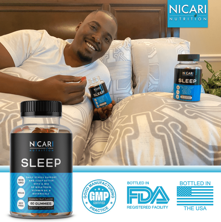 Nicari Nutrition – SLEEP | Melatonin Sleep and Stress Support Vegan Gummy Vitamins – 60 Count