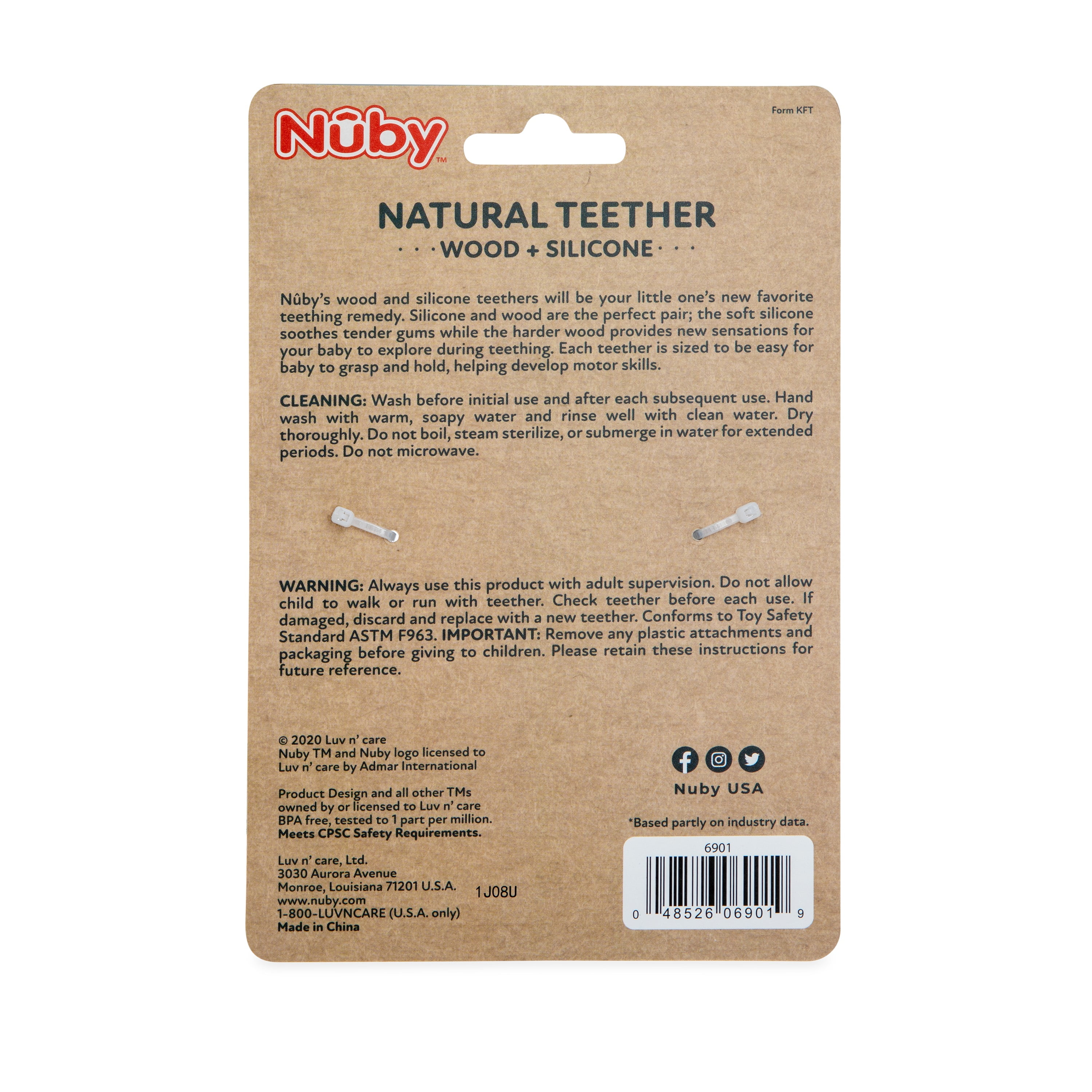 Wee ones will love Nuby’s Natural Teethers for their adorable characters and soothing capabilities. Silicone and wood are an ideal teething combination; the soft silicone comforts gums while the harder wood gently assists in the emergence of new teeth. Our cute elephant character has multiple gnaw-able surfaces, including massaging Nub-eez on each ear. Different textures are great for teething, but also great for tactile development, as they encourage little hands to explore and learn. Each teether is sized to be easy for baby to grasp and hold, helping develop motor skills. The minimalist design is easy-to-clean, making these teethers a parent favorite, too!