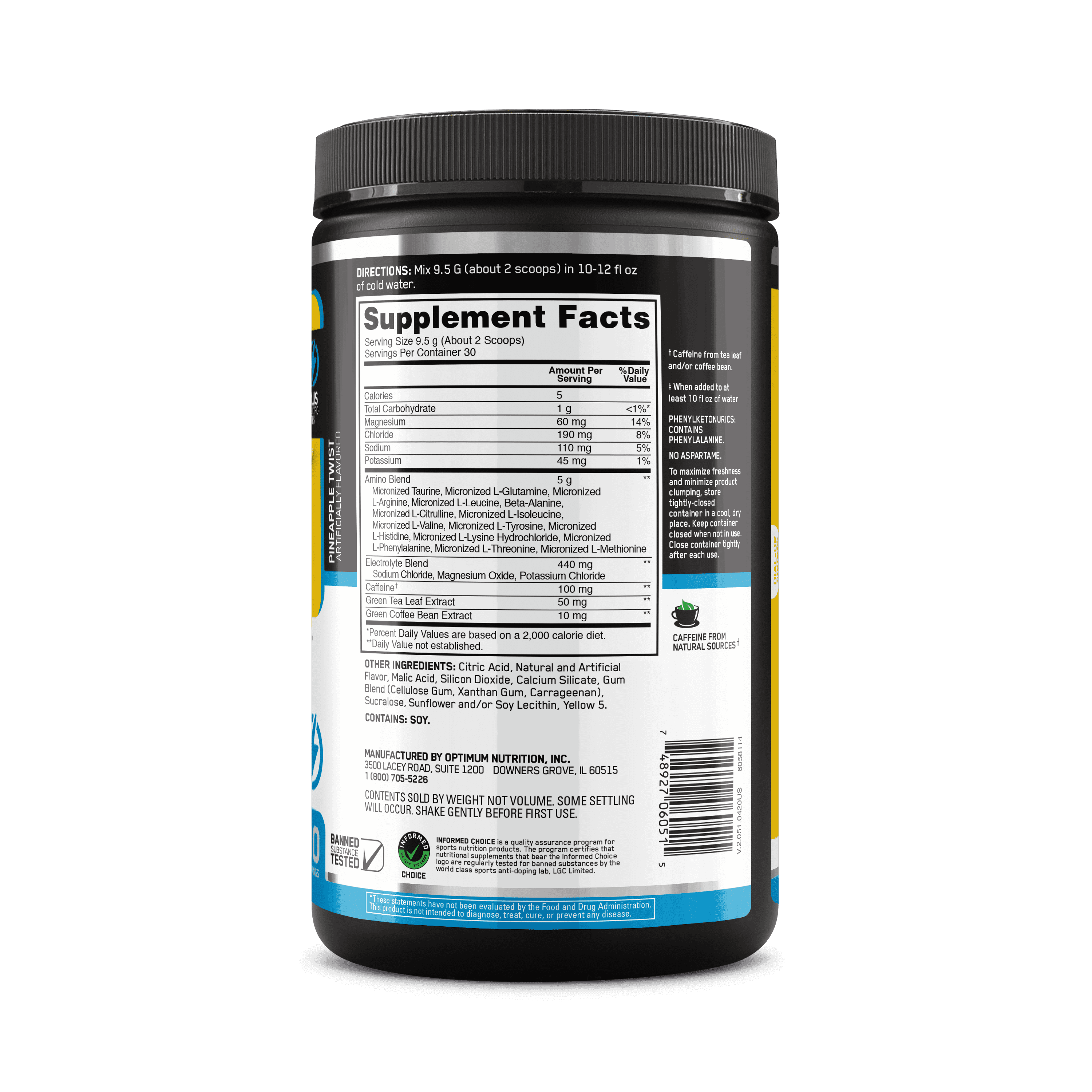 Optimum Nutrition, Amino Energy Plus Electrolytes, Powder, Pineapple Twist, 30 Servings