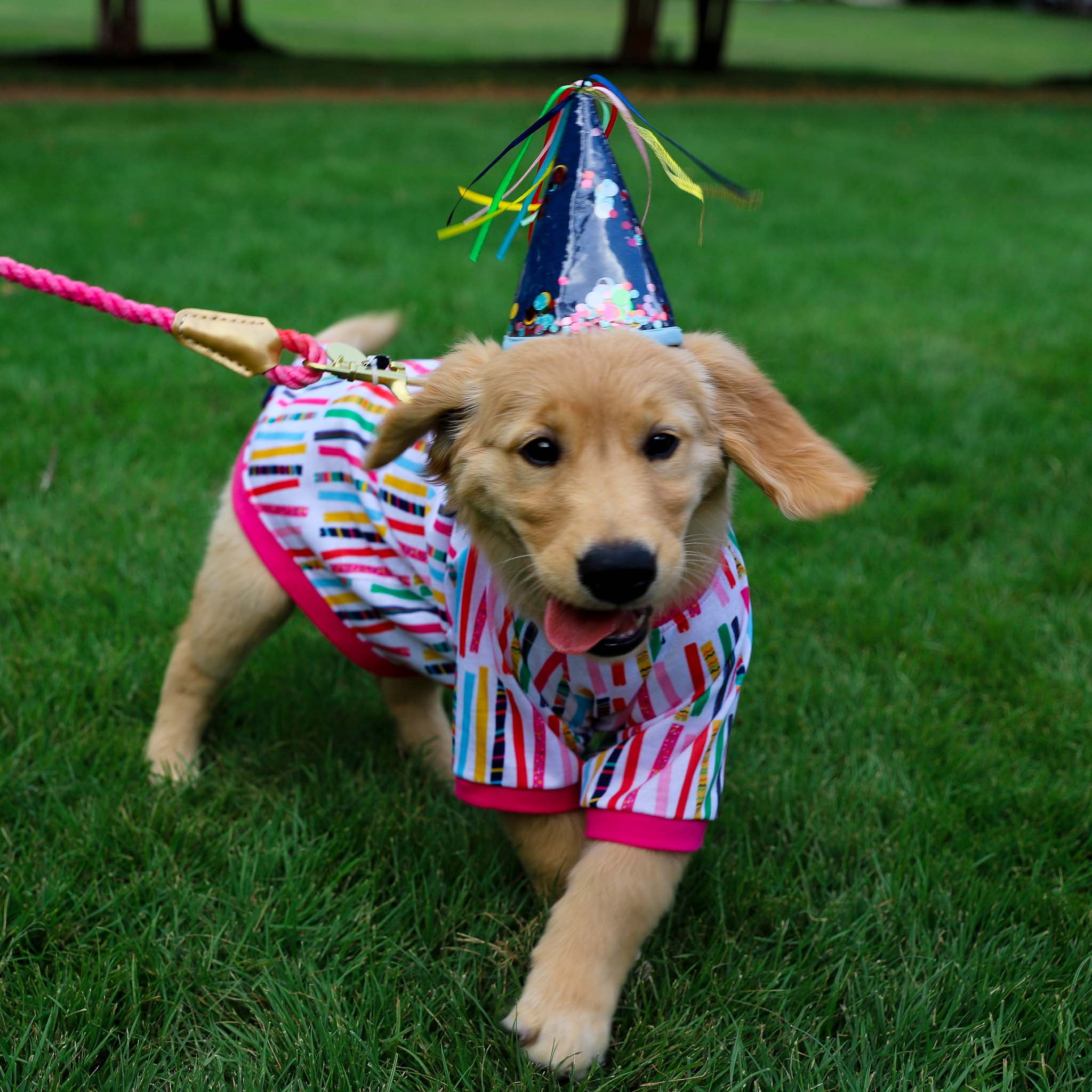 You can’t throw a party without a few party hats and this is one you’ll be accessorizing all your guests in come the big day! This confetti-filled hat (no, really there’s confetti in the vinyl!) is the perfect something to dress any pup up or down while they’re celebrating. Talk about a PAWTY!