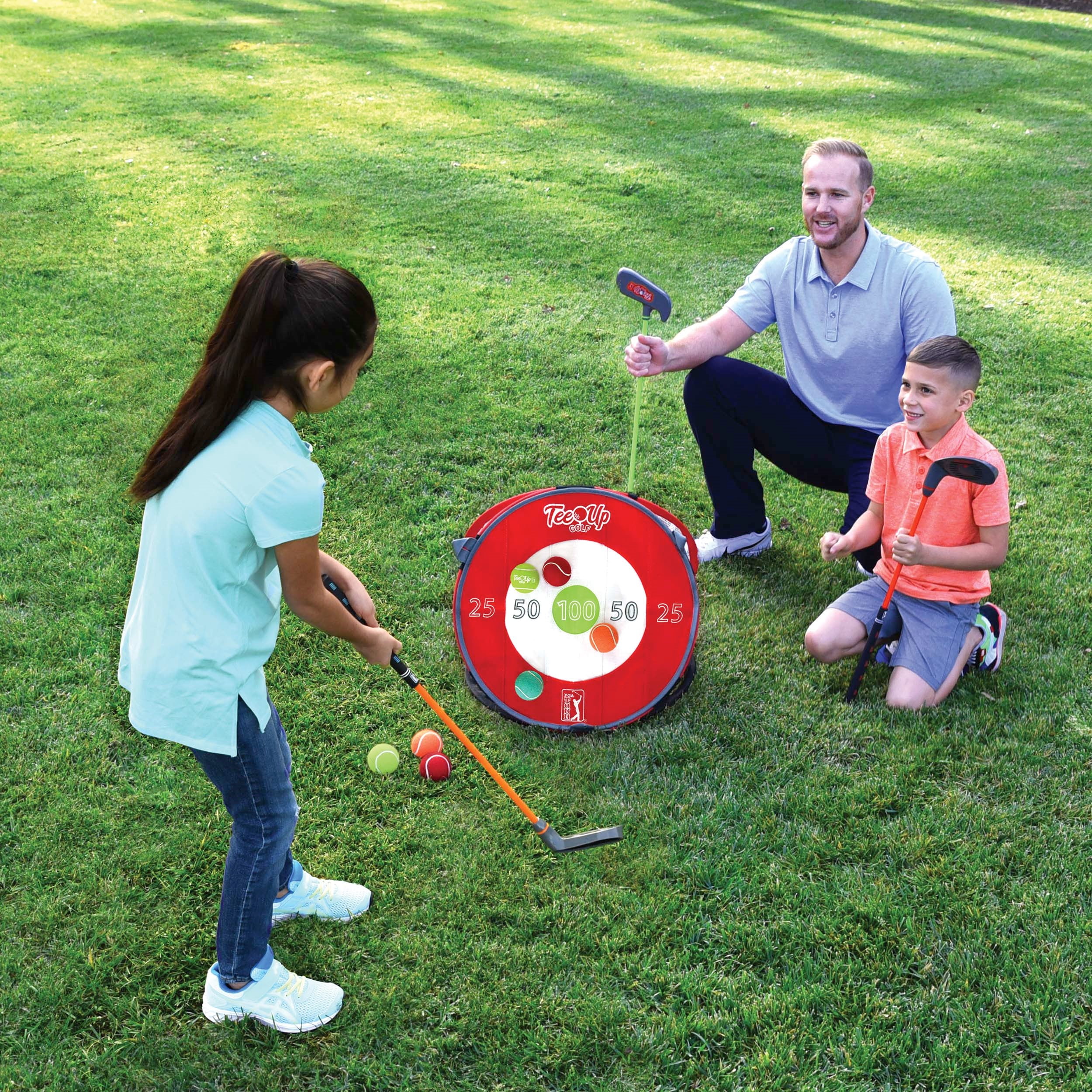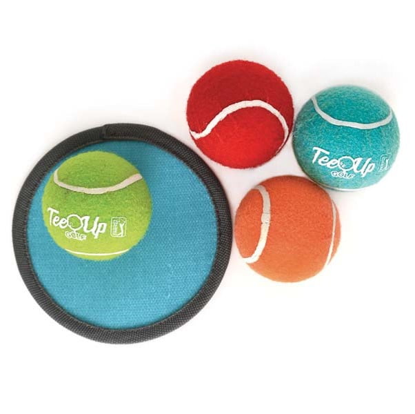 The Tee-Up Assorted Color set Includes 4 Like Multicolor Golf balls. They are Waterproof, and specially designed to pair with Tee-Up accessories. They are Durable and made with a Low Compression and loop material cover. Versatile and easy to use. Safe for indoor or outdoor play. Same weight as regulation golf ball provides consistent feel. Proceeds from every Golf Gen purchase immediately benefits the First Tee.
