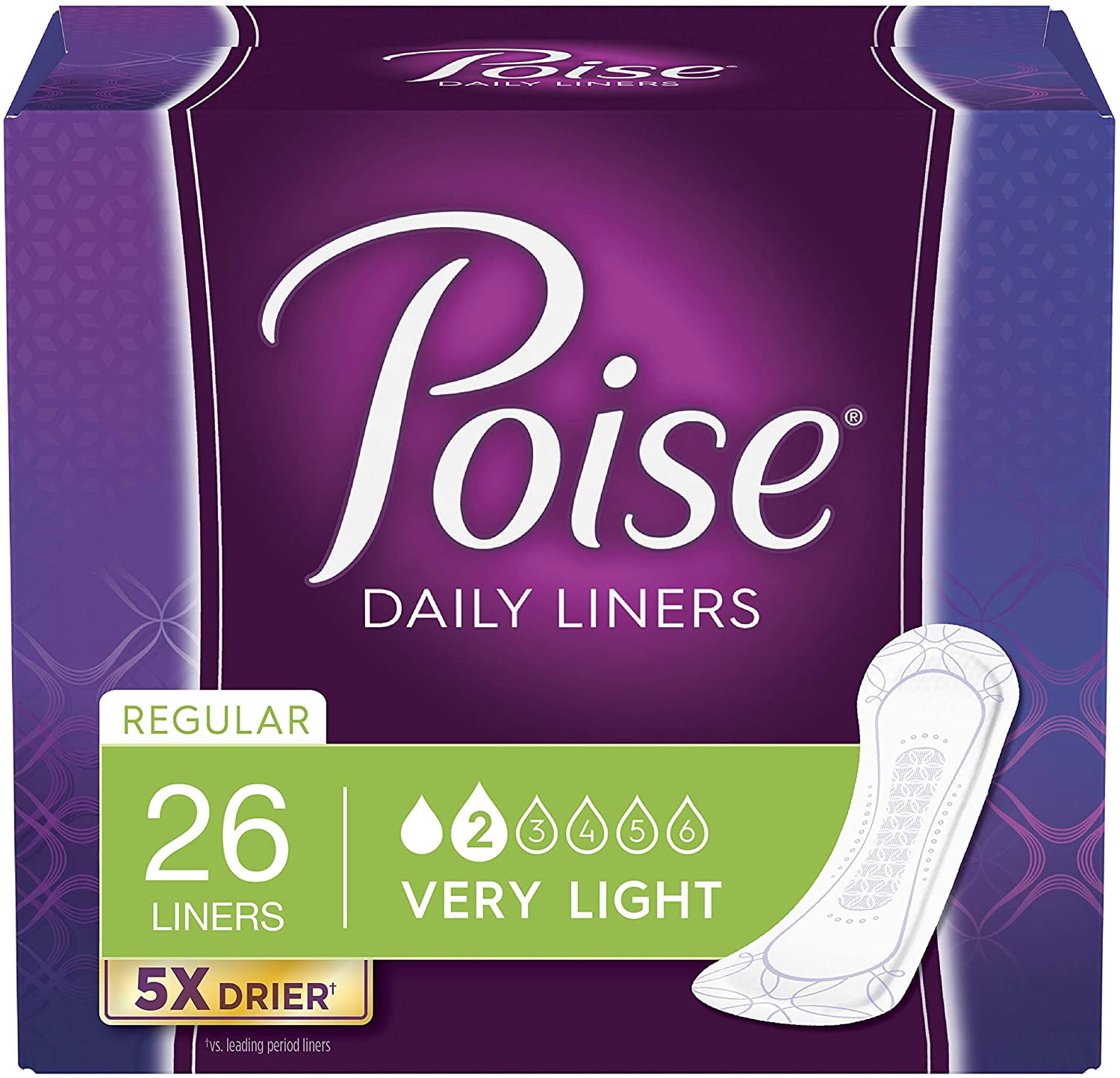 Incontinence liners for women with trusted 3-in-1 protection providesdryness, comfort and odor control Specifically designed for light bladderleaks, Poise Daily Liners stay 5x drier than the leading period linerAbsorb-loc Core quickly absorbs & locks away wetness and odor while theCleanFresh Layer (soft breathable cover) instantly dries to help keep youfresh and dry all day Poise Daily Liners is the number one brand for lightbladder leaks*, and are unscented, individually wrapped, available inregular & long length Incredibly thin incontinence panty liners always shipin a discreet package; Packaging may vary from image shownIncontinence liners for women with trusted 3-in-1 protection provides dryness, comfort and odor control Specifically designed for light bladder leaks, Poise Daily Liners stay 5x drier than the leading period liner Absorb-loc Core quickly absorbs & locks away wetness and odor while the CleanFresh Layer (soft breathable cover) instantly dries to help keep you fresh and dry all day Poise Daily Liners is the number one brand for light bladder leaks*, and are unscented, individually wrapped, available in regular & long length Incredibly thin incontinence panty liners always ship in a discreet package; Packaging may vary from image shown