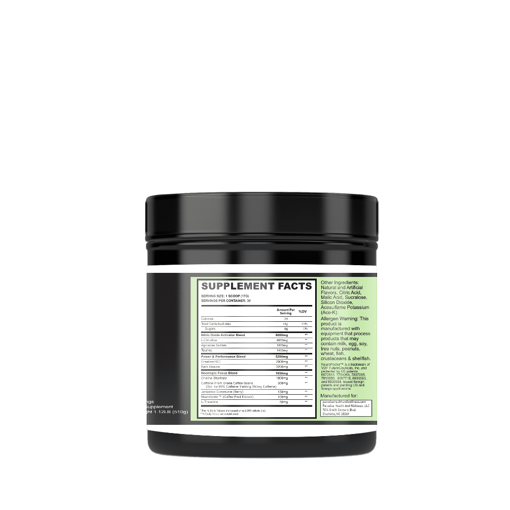 High stimulant. Nitric Oxide stimulator. Promotes energy & athletic performance. Contains a specific combination of energy, pump and strength ingredients paramount to a great workout.*