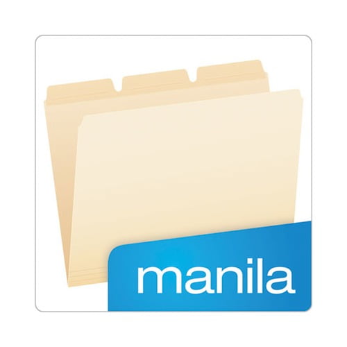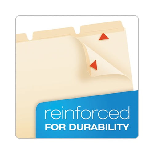 Hardworking and versatile Ready-Tab file folders come with three tab positions. Pick one and fold the others out of the way. Reposition the tabs as needed. Folders work seamlessly with existing Pendaflex hanging folder systems and won’t obscure hanging folder tabs. 11 pt. stock. File Folder Size Type: Letter File Folder Color: Manila Color Family: Manila File Folder Material: 11-pt Stock. Green : Paper contains 10% post-consumer recycled content, 10% total recycled content.