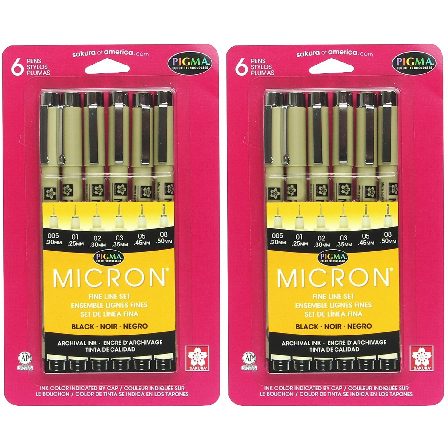 - 2 Sets Each (All Black Ink): 0.20 mm (005), 0.25 mm (01), 0.30 mm (02), 0.35 mm (03), 0.45 mm (05), 0.50 mm (08)