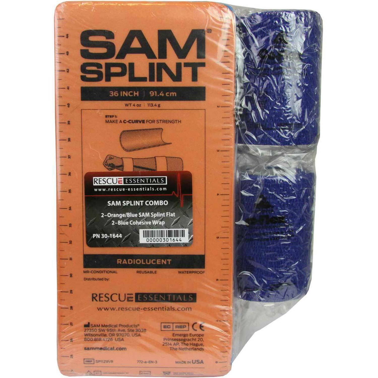 This SAM® Splint Combo Pack comes with two of the Original 36" SAM® Splints in orange/blue, plus two rolls of blue cohesive wrap. Cohesive wrap is the preferred material for securing SAM® Splints. Dimensions (Package): 6½" W x 9" L x 2¼" D Weight: 11 oz