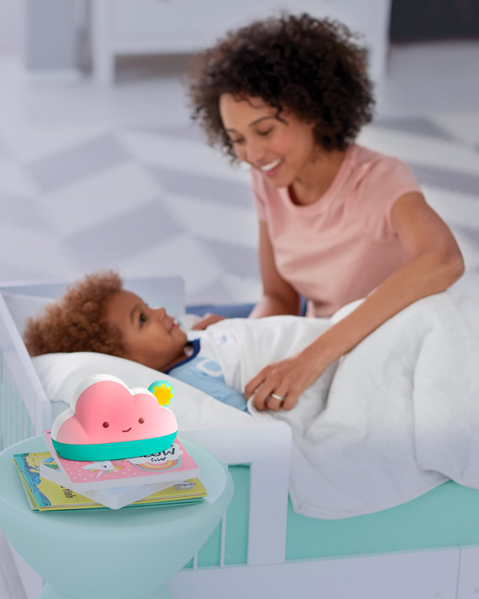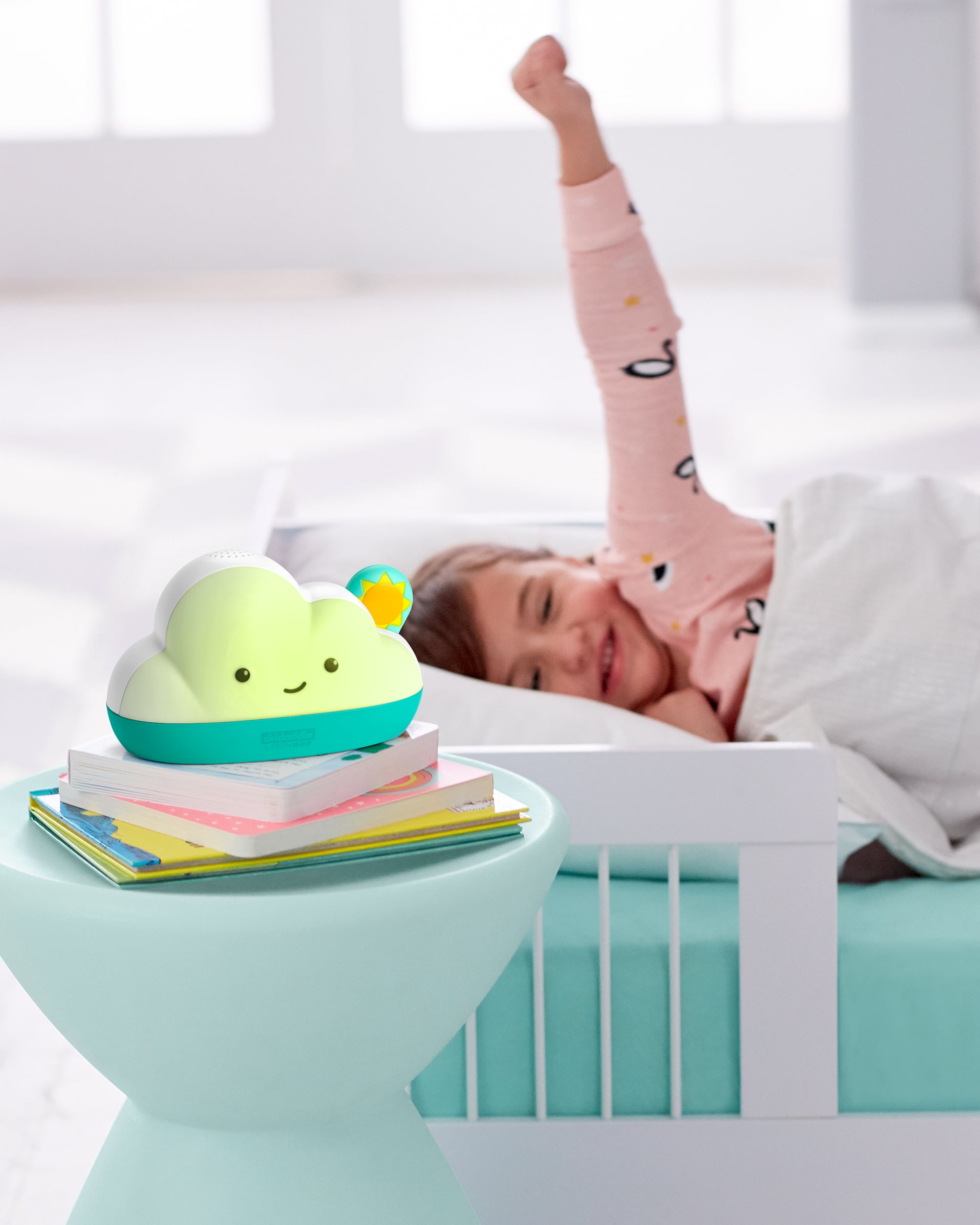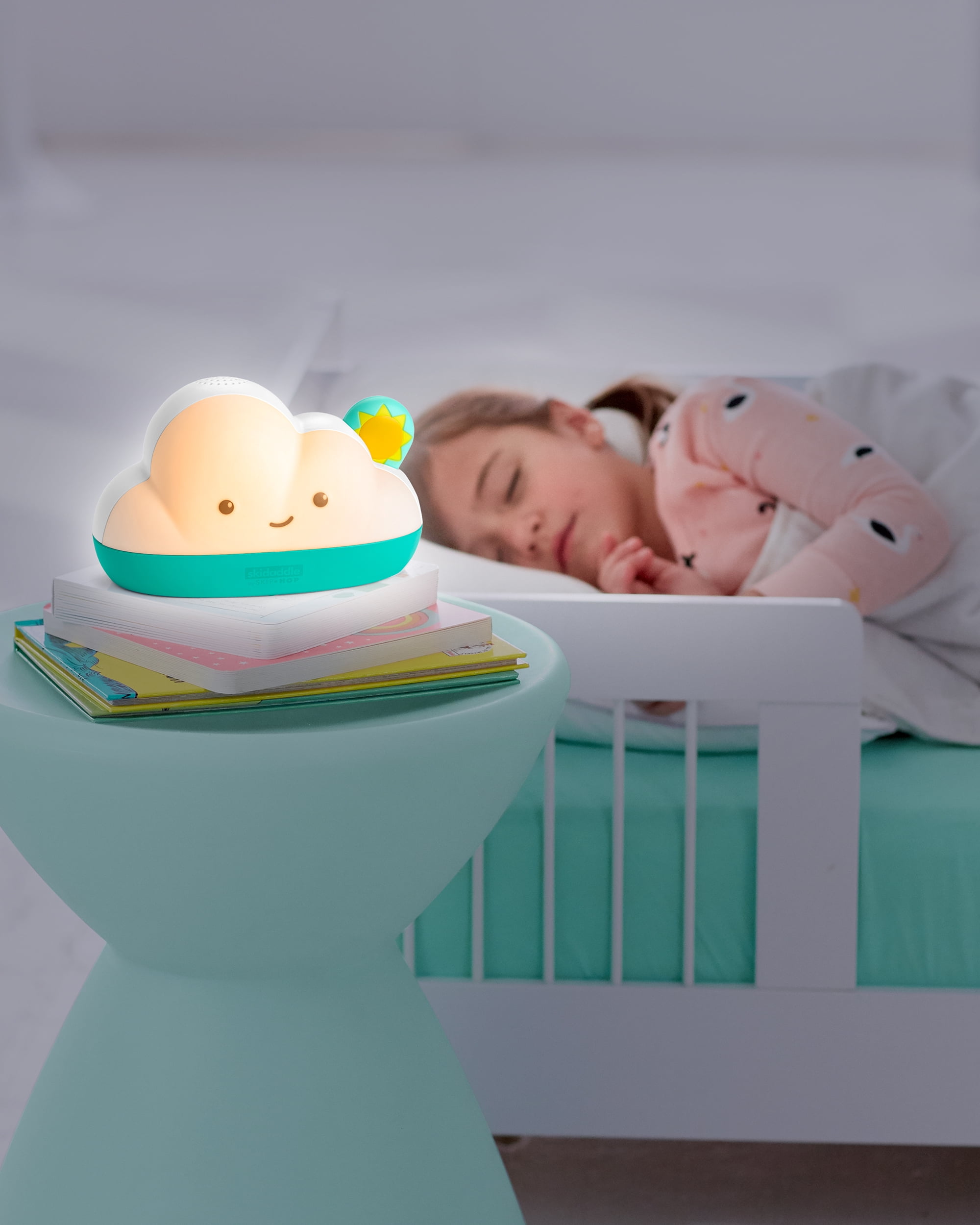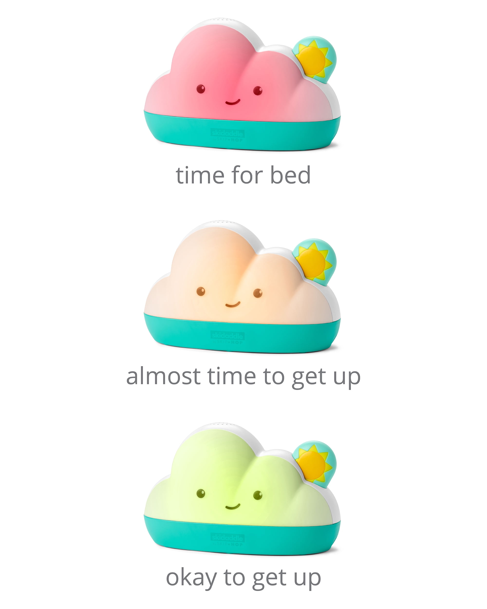 - Sleep Trainer Mode: Cloud lights up with easy-to-follow color cues: Red = Time For Bed; Yellow = Almost Time To Get Up; Green = Okay To Get Up