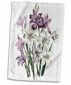 3dRose Vintage Flowers Gladiolus in White Pink and Lavender – Towel, 15 by 22-inch