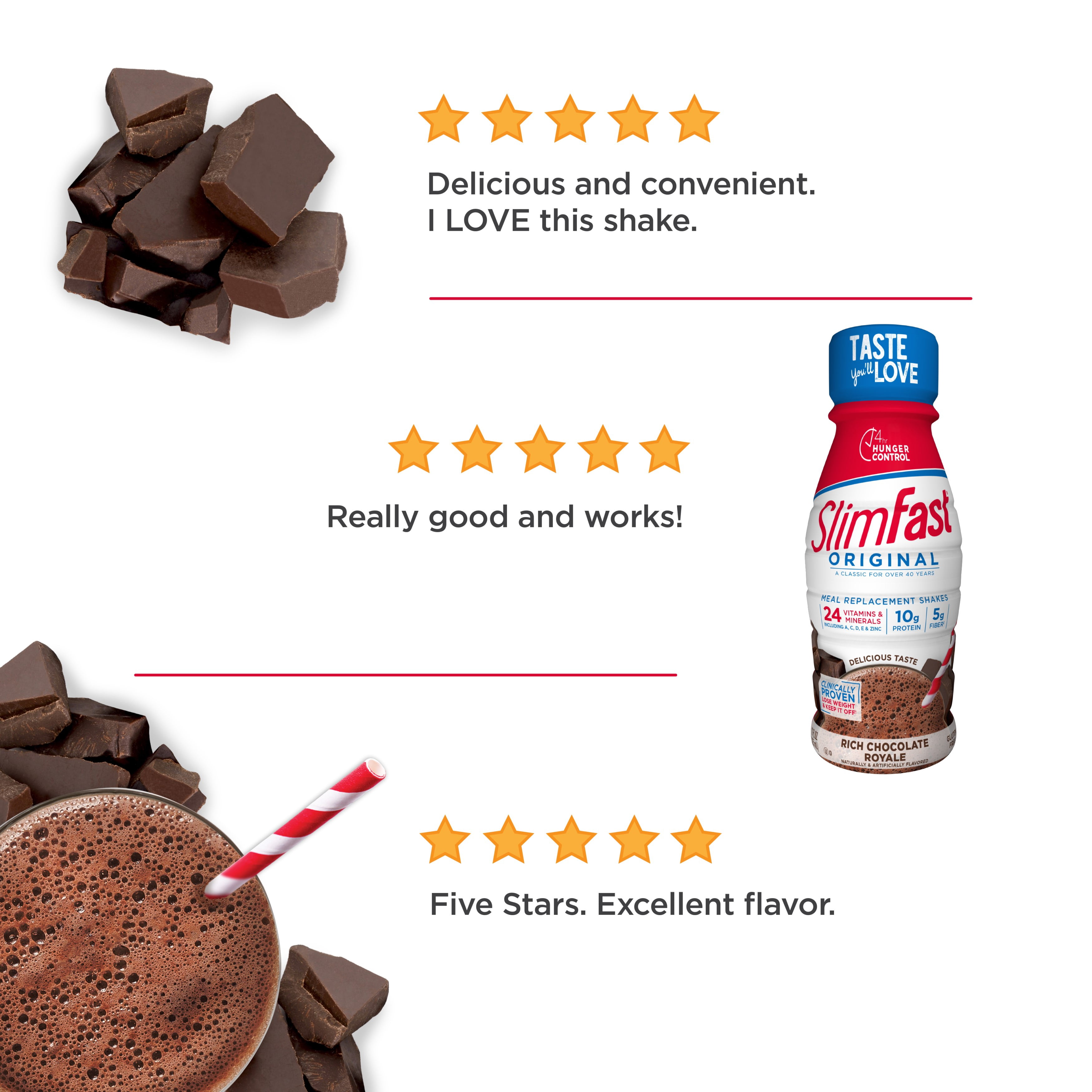 SlimFast Original Ready to Drink Meal Replacement, Rich Chocolate Royale, 11 fl. oz., Pack of 4