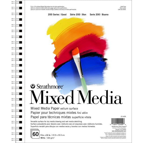 Strathmore 200 Series Mixed Media Notebook, Side Wire, 9′ x 12′, 60 Sheets