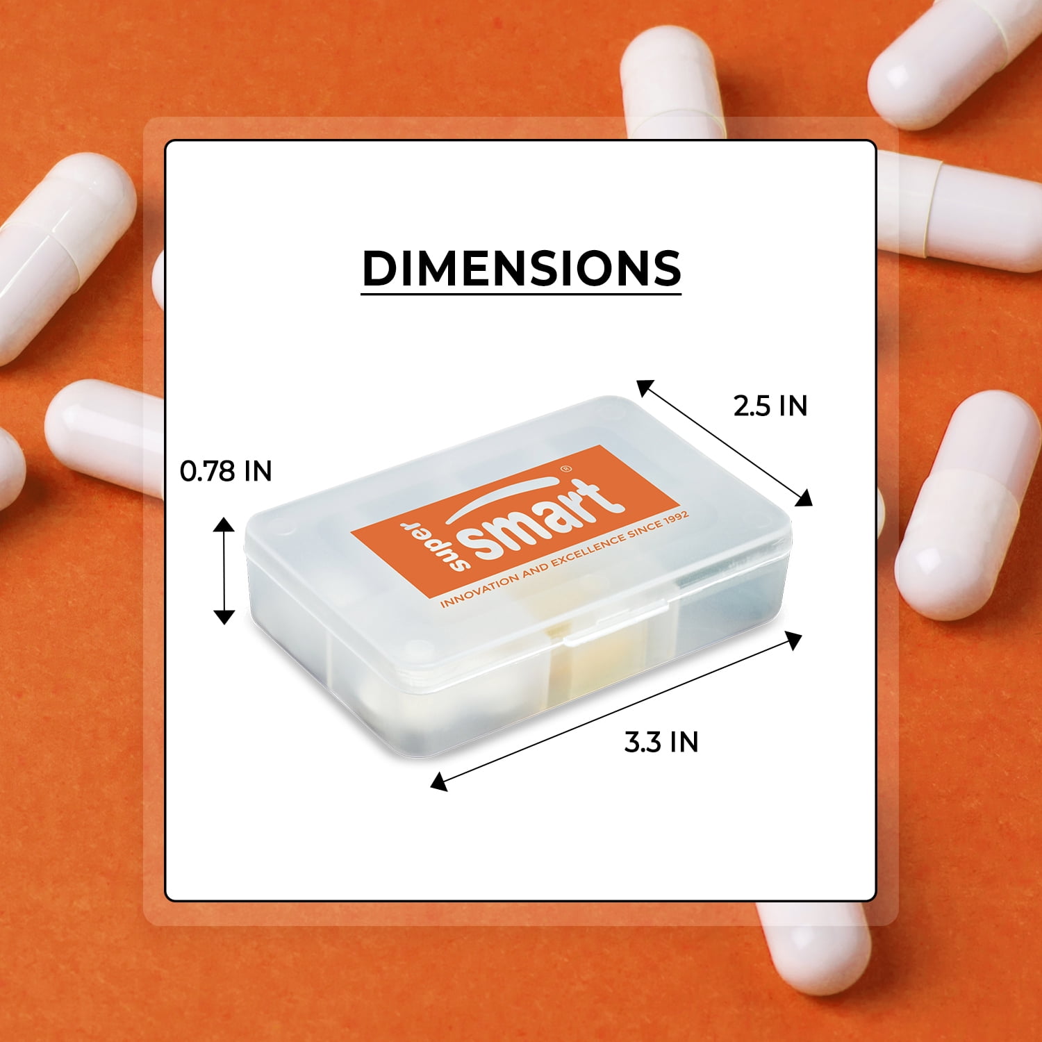 A pioneer in dietary and nutritional supplements for over 30 years. The Supersmart pill dispenser is the practical way to keep track of your supplement schedule and is ideal when travelling. The small week pill organizer has the following dimension 8.5 x 6.5 x 2 cm, which makes it extremely convenient for all of your trips. It fits perfectly into the smallest pockets of your bags as well as in your pants. The food grade plastic is conform to the European and US regulations making it a safe container. Our products and formulas are constantly updated to reflect the latest scientific research, advances, and production methods. We offer an outstanding quality and choice of Gluten Free, Non-GMO, Additive Free, Soy Free, Nanoparticules Free and Vegan Friendly products.