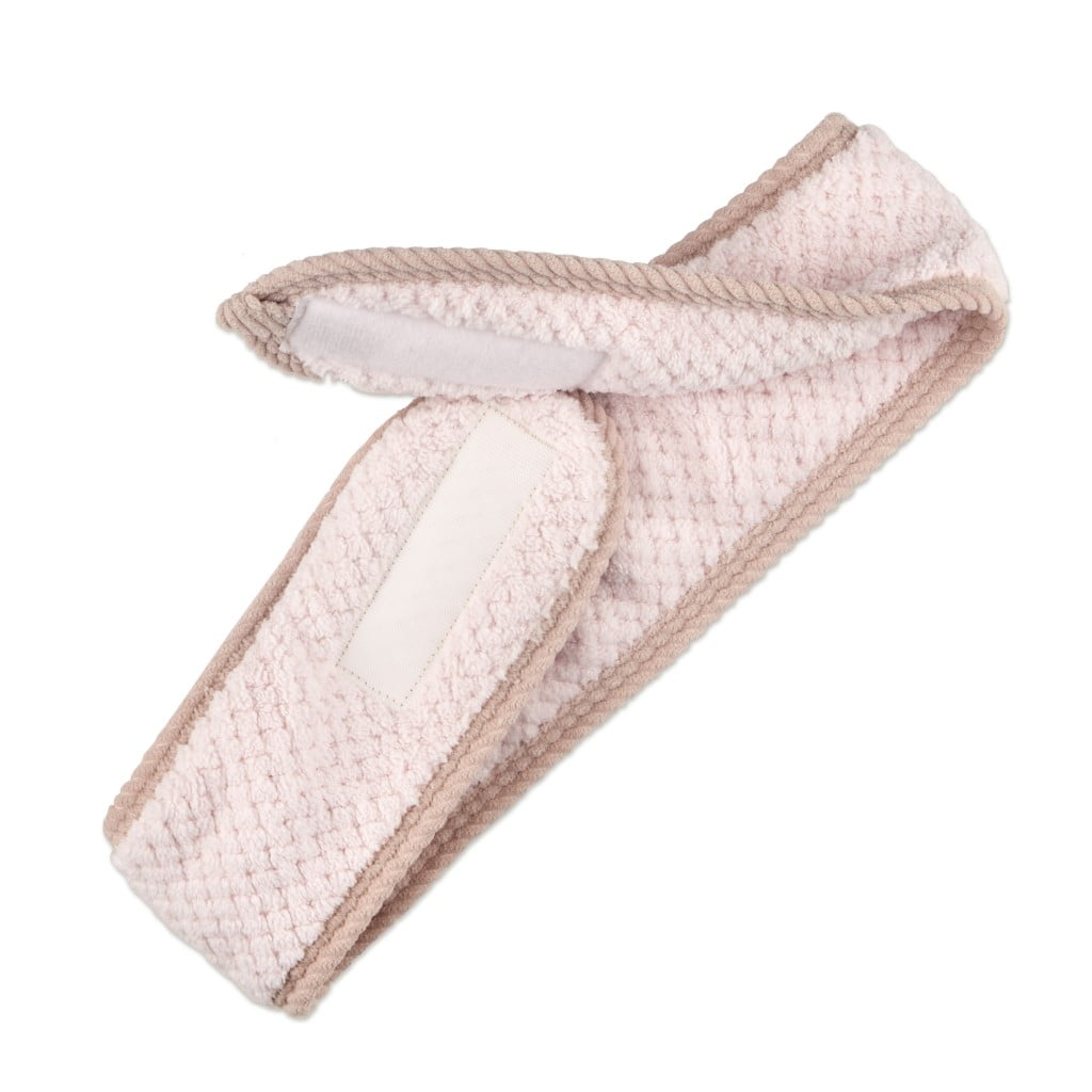 - Soft fabric headwrap with a custom-fit hook-and-loop closure