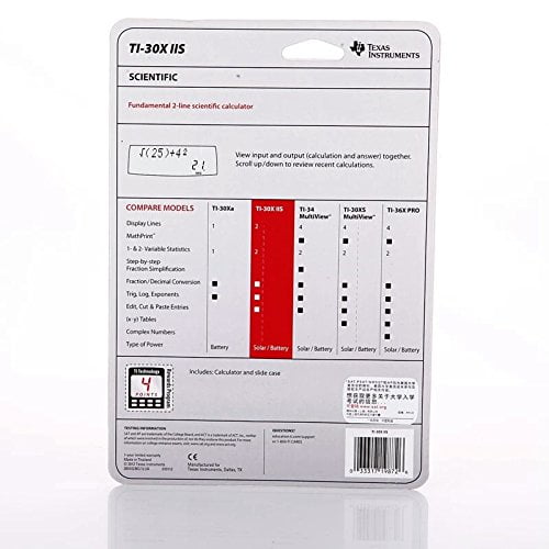 2 Line(s) – LCD – Solar, Battery PoweredTexas Instruments TI-30XIIS Scientific Calculator
