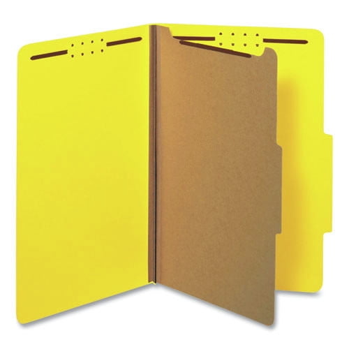 1 Divider, Bright Colored Pressboard Classification Folders – Legal Size, Yellow (10/Box)