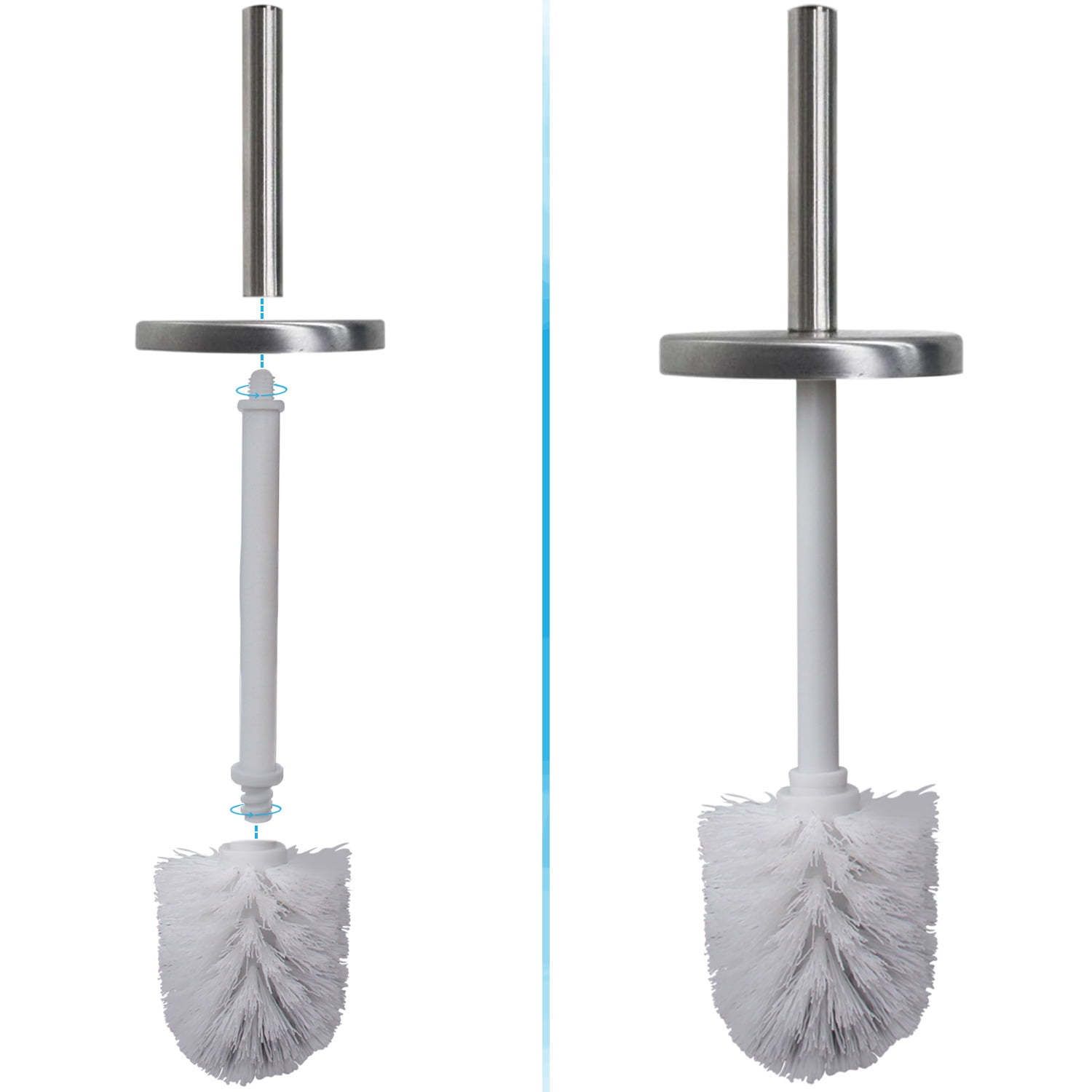 - Toilet Cleaner Brush Easy Assembly: This toilet brush assembles in just seconds with only 4 steps for full assembly. Take the handle and splash guard, and screw them onto the smaller end of the brush’s pole. Take the toilet cleaning brush head and screw it on the larger end of the pole.