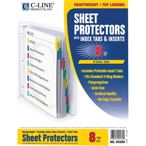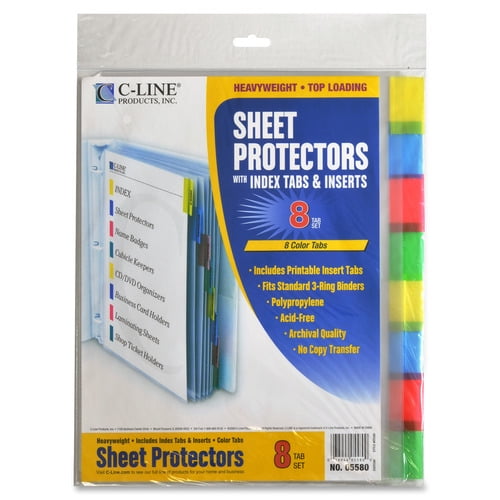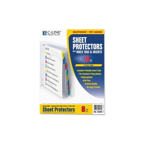 C-Line Heavyweight Poly Sheet Protectors with Index Tabs 8-Tab Set, Assorted Color Tabs, Top Loading, 8 1/2 x 11, 8/ST, 05580