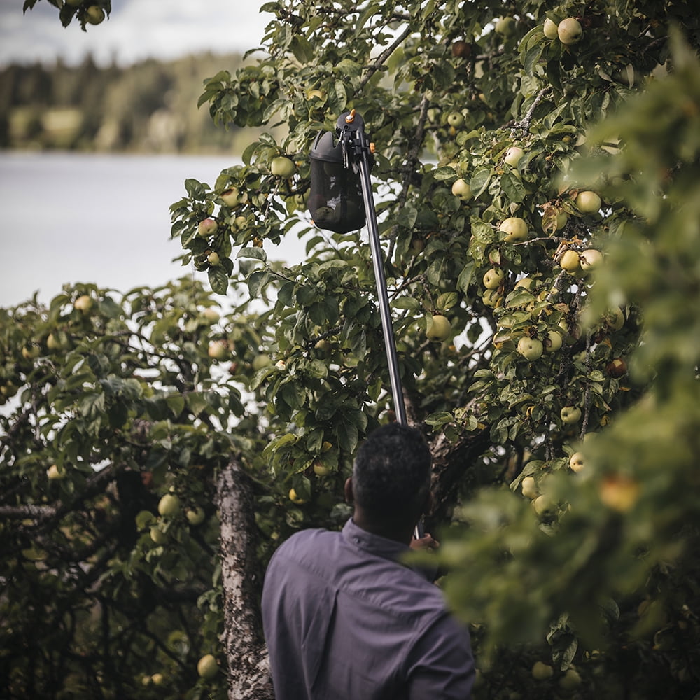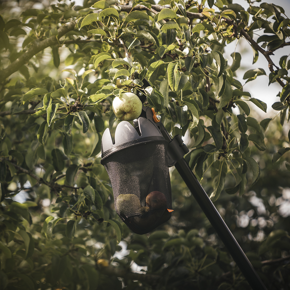 - Fiskars Fruit Picker Basket harvests fruit from tall trees without bruising or scratching