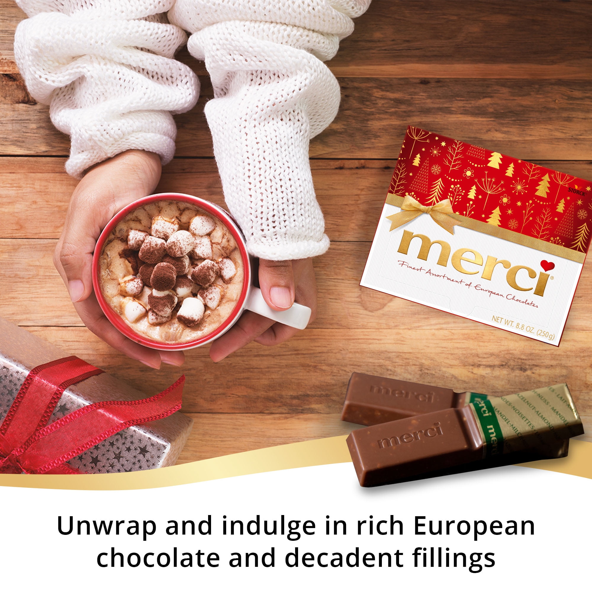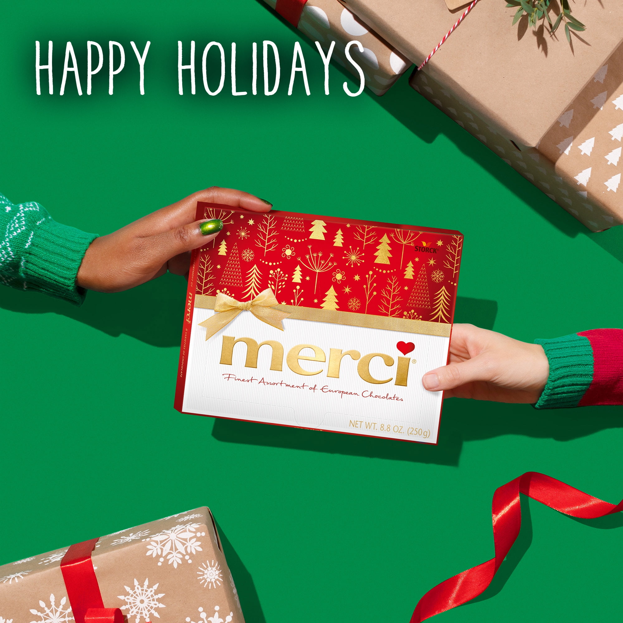 - A delicious alternative to old fashioned Christmas candy, place a box of merci chocolate under the Christmas tree or place it in Christmas stockings to say "Thank you" during the holiday season