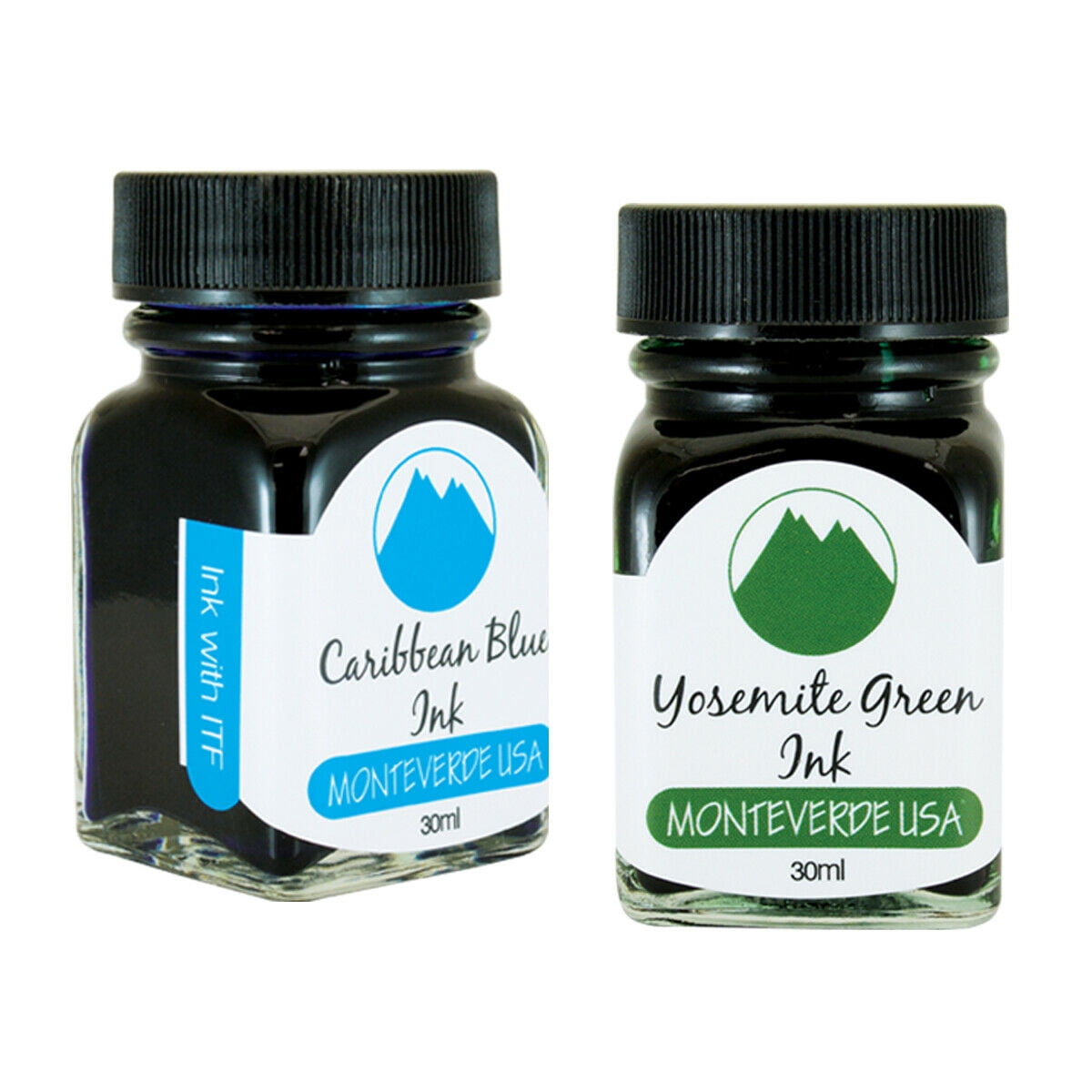 - Pack Contains the following Monteverde USA Ink Bottles: (1) Monteverde 30ml Blue/Black Ink Bottle. (1) Monteverde 30ml Scotch Brown Ink Bottle.