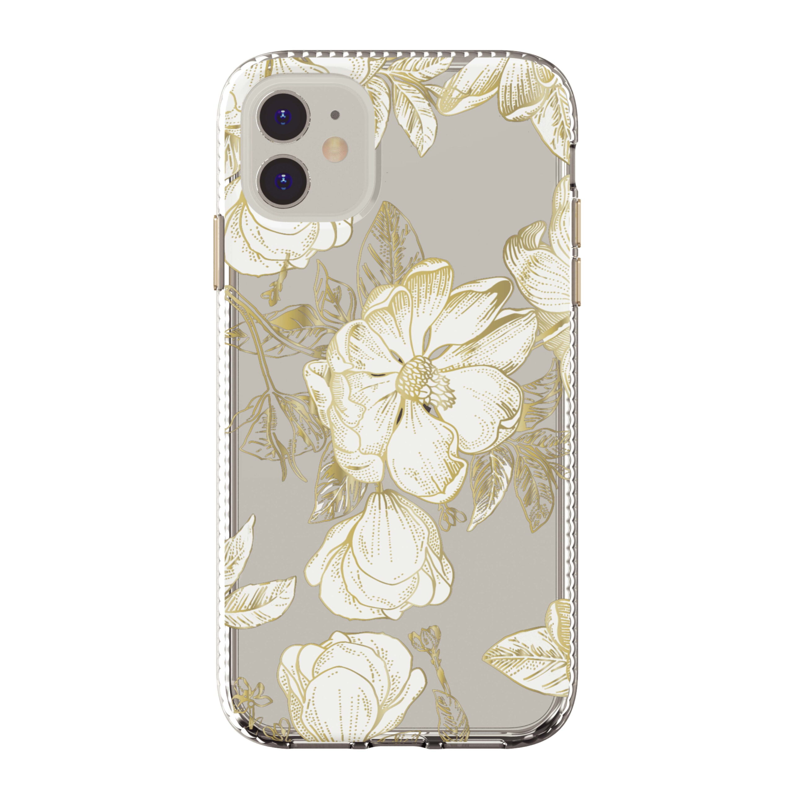 onn. White Metallic Floral Phone Case for iPhone 11/XR