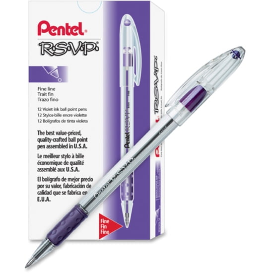 Pentel R.S.V.P. Ballpoint Pen, 0.7 mm, Violet, Pack of 12