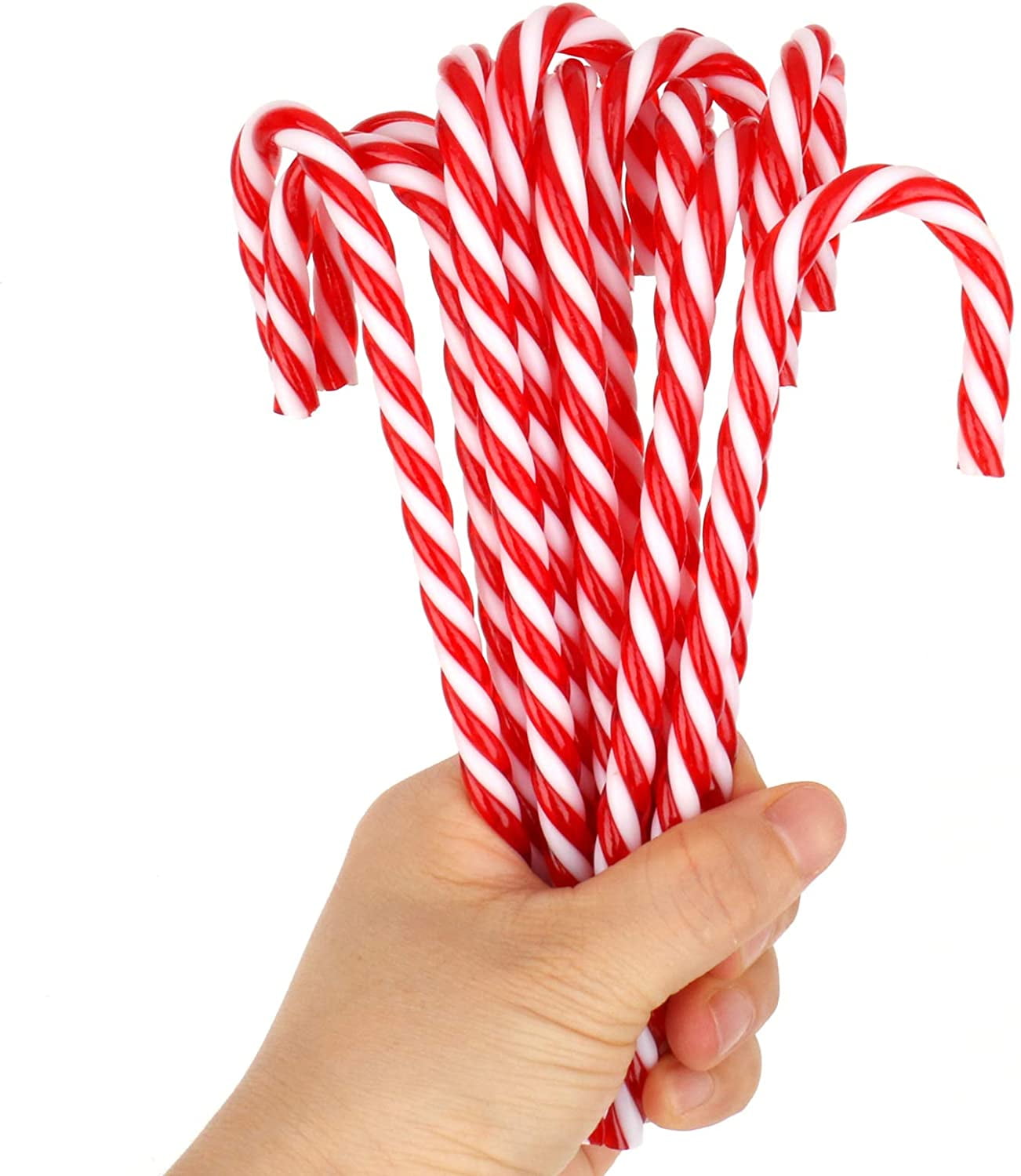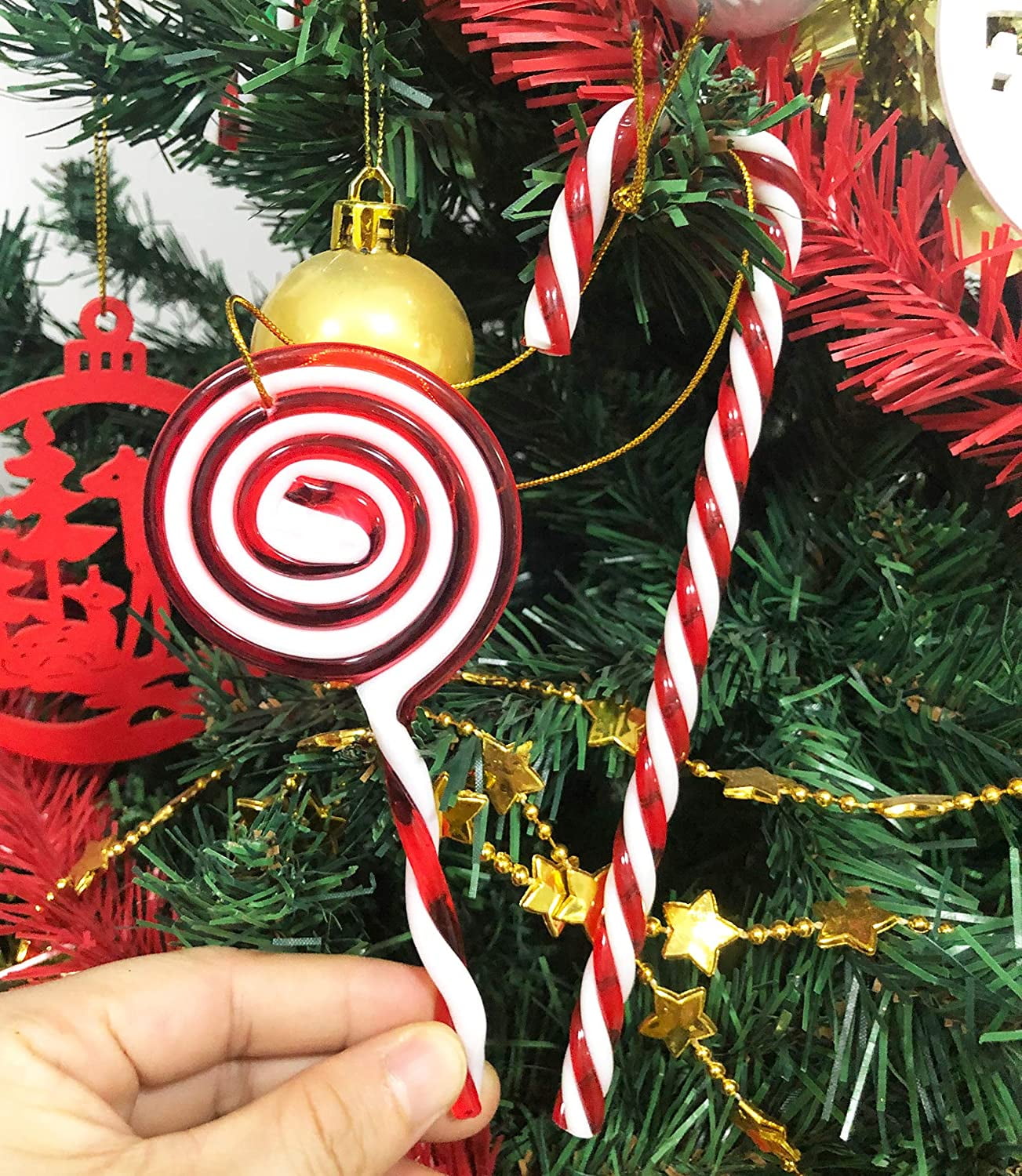 Red White Candy Cane Christmas Tree Hanging Ornaments, 12 pcs