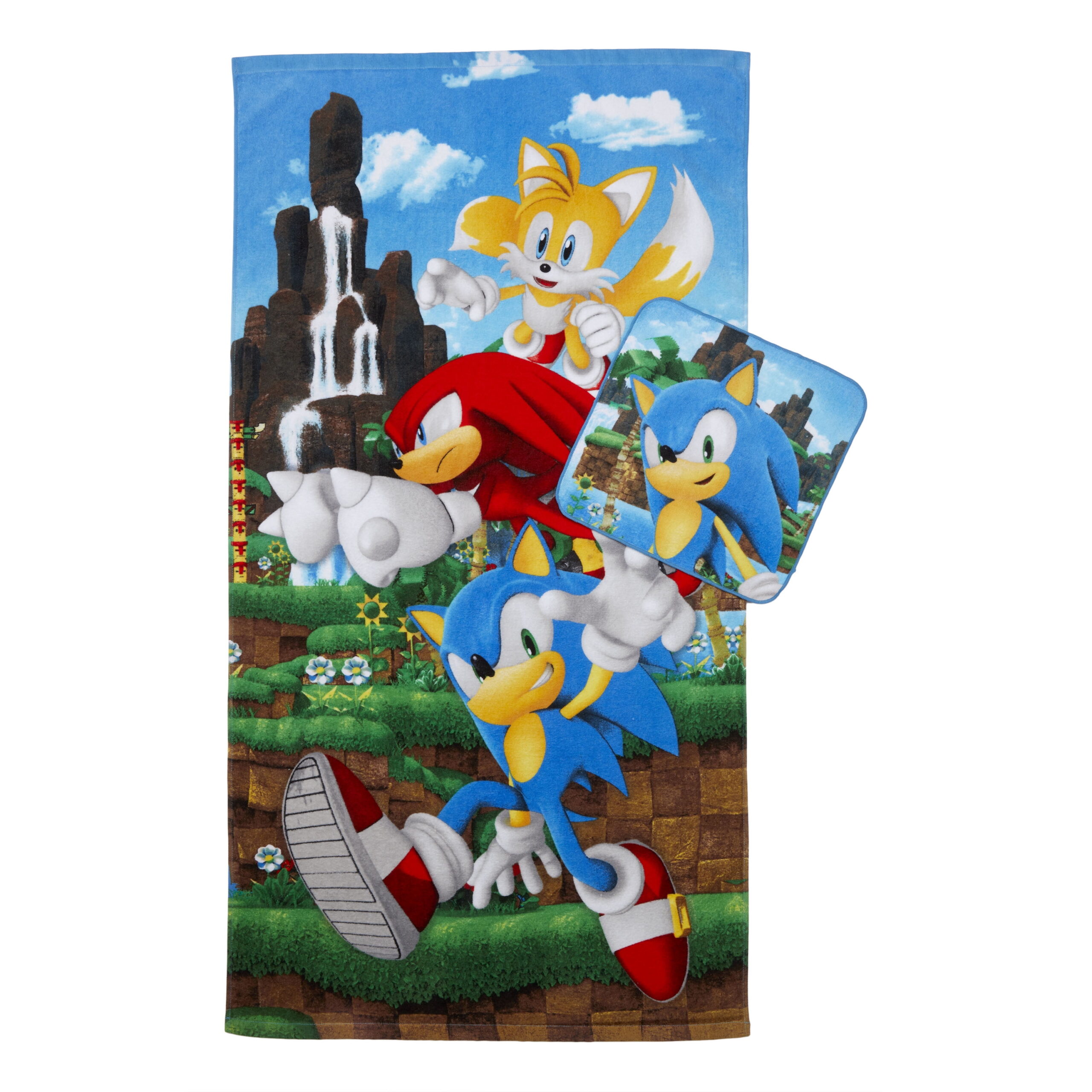 Sonic the Hedgehog Kids Cotton Bath Towel and Wash Cloth, 2-Piece Set, Blue