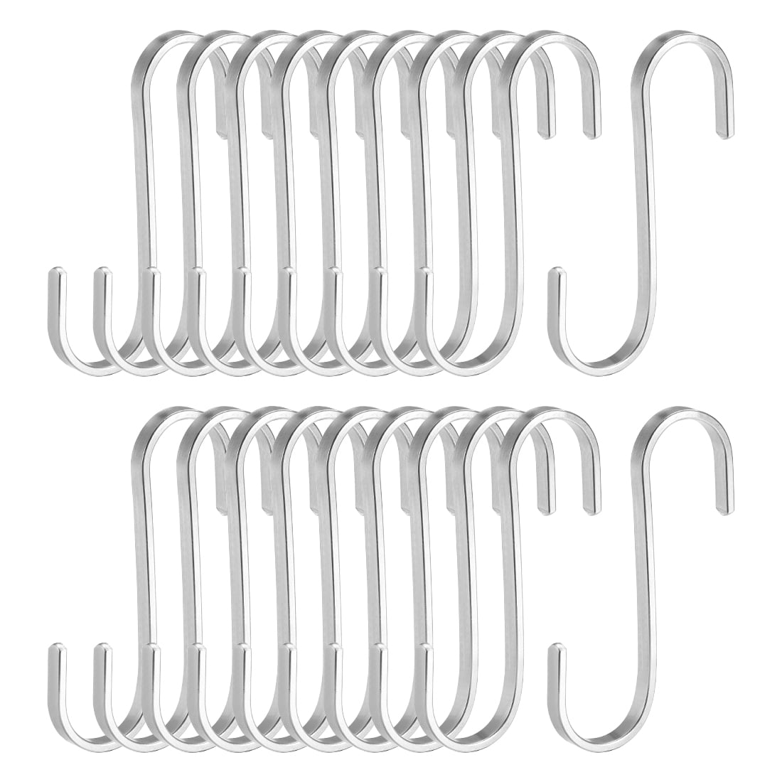 – Our S hooks are a simple and brilliant storage solution for hanging anything in your kitchen, closet, storage room, bathroom, livingroom, garage, workshop, office, garden where space is limited. Just simply hang them on pot rack, wall rails or shelves.