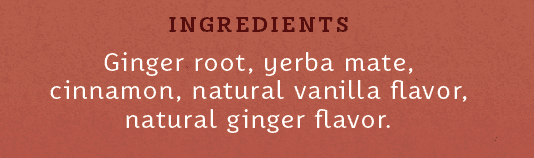 - Spicy yerba mate herbal tea with a fiery ginger kick that builds with each sip