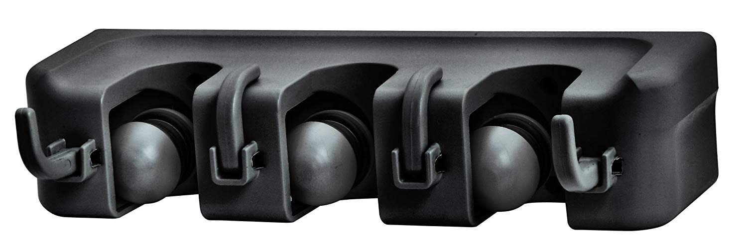 This innovative cleaning product organizer is designed with rubber balls that automatically adjust to the thickness of the product you place within it. The rubber balls lock once the product is in place, ensuring that your cleaning product is gripped tightly and won’t fall. Simply lift the product to remove it! The 4 hooks are to use for smaller tools such as brushes, dustpans, dusters, and more. They can be folded when not in use and won’t break easily.Superio Mop And Broom Holder Wall Mount Black Cleaning Tools Wall Organizer, 3 Rack Slots / 4 Hooks For Kitchen Closet, Garage, Garden, Office