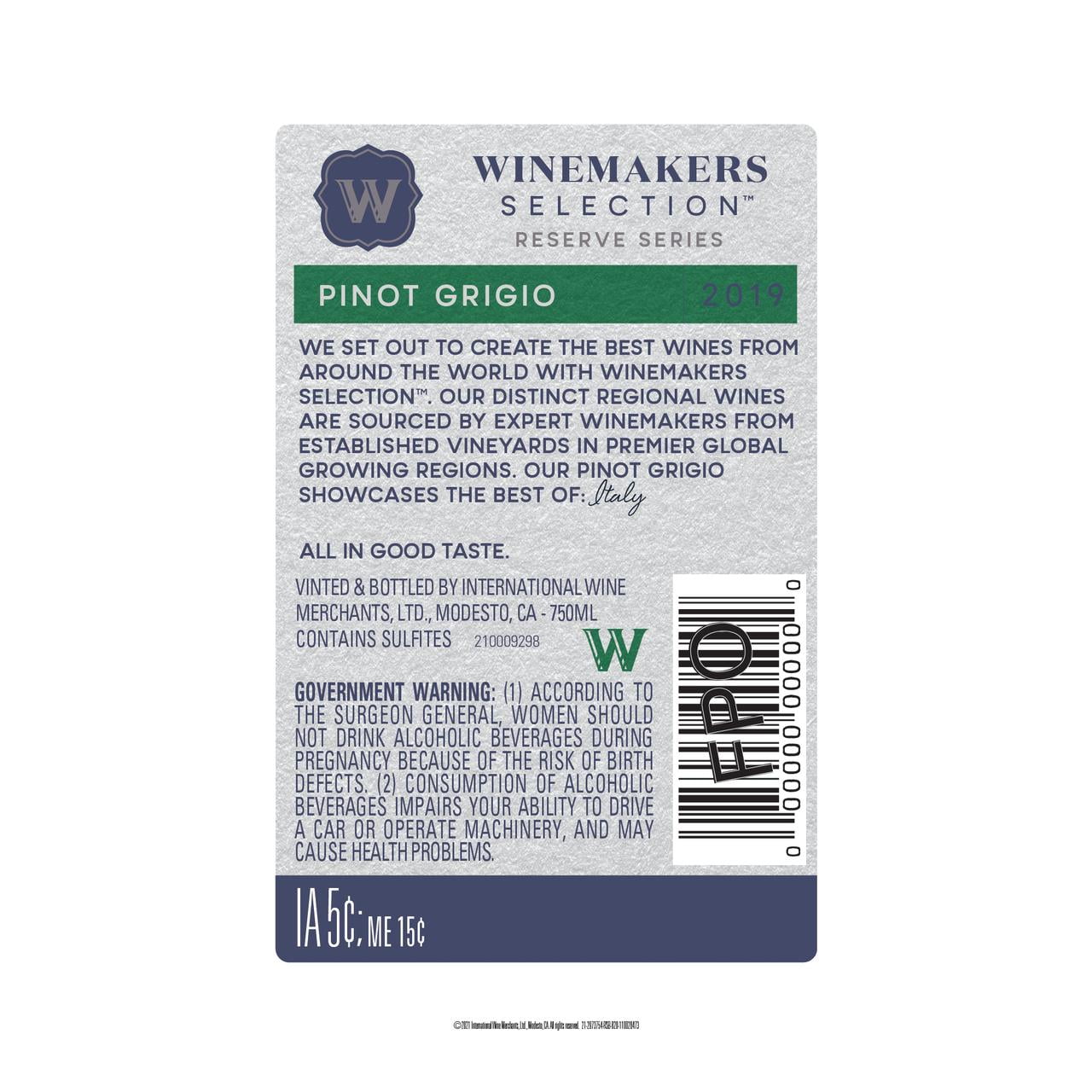 The Winemakers Selection Pinot Grigio is a bright, light-bodied white wine from delle Venezie, one of Italy’s historic wine regions. Aromas of Meyer lemon and white flower lift from the glass as layers of pear and white peach delight the palate. A zesty acidity and minerality carries through to the finish with a touch of candied lemon at the end. Our Pinot Grigio captures the essence of Northeast Italy: bright aromatics that build on mouthwatering acidity to offer refreshing complexity in every sip.