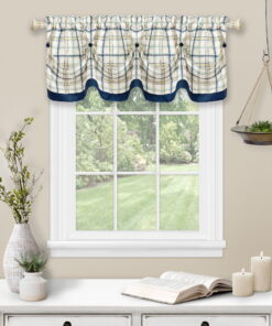 Country Farmhouse Plaid Tattersall Button Tuck Window Valance – Navy