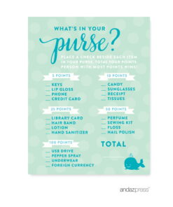 What’s In Your Purse? Boy Whale Nautical Baby Shower Games, 20-Pack