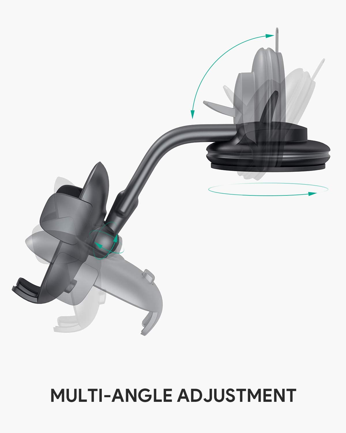 Aukey car phone holder giving you the freedom to position it on multiple locations on the dashboard or windshield. Super strong vacuum suction cup features a layer of sticky gel and a locking lever which can maximize the stability and keep the mount in place. Comes with an anti-shake stabilizer, it safely hold the device without vibrating and wobbling. As summer approaches, please avoid direct exposure to the sun as this may affect the function of your car mount. AUKEY car phone holder [strong suction] windshield dashboard with Anti-Shake 360 Degree Rotation Compatible with iPhone 11 Pro Max/11/XS Max/XS/8 Galaxy S10/S9/S8/S7/S6/J5/J3/A5/A6/A7, Huawei P20/Mate10/Mate20/honor 8X, iPhone 11 Pro/ 11 Pro Max/ X/XS/XR/8Plus/8/7Plus/7/6Plus/6S/6, Sony Xperia Xz3/Xperia Xz2/Xperia Xz2 compact and More. Easily place and remove your phone using the widely adjustable phone holder with instant release button. Thanks to the 360 degrees ball-head, the dashboard mount can be flexibly tuned to display at an optimal viewing angle, either in landscape or portrait mode for convenient navigating, calling, and music in the vehicle.