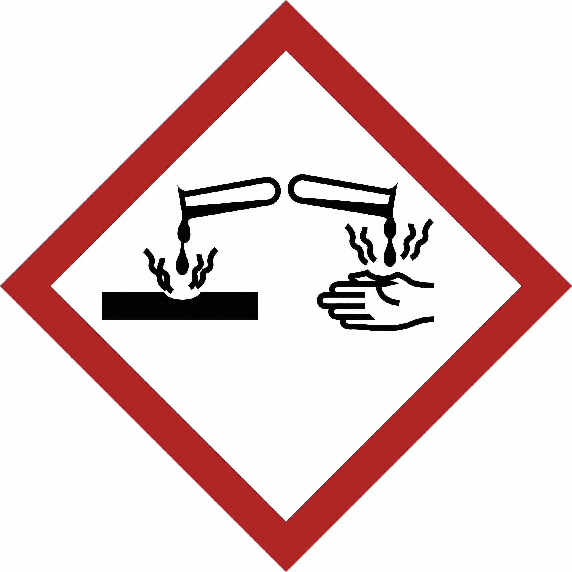 GHS Label, Language No Text, Legend GHS Corrosive Symbol, Header No Header, Material Vinyl, Height 5/8 in, Width 5/8 in, Shape Square, Write on Surface No, Indoor/Outdoor Usage Indoor/Outdoor, Package Quantity 39