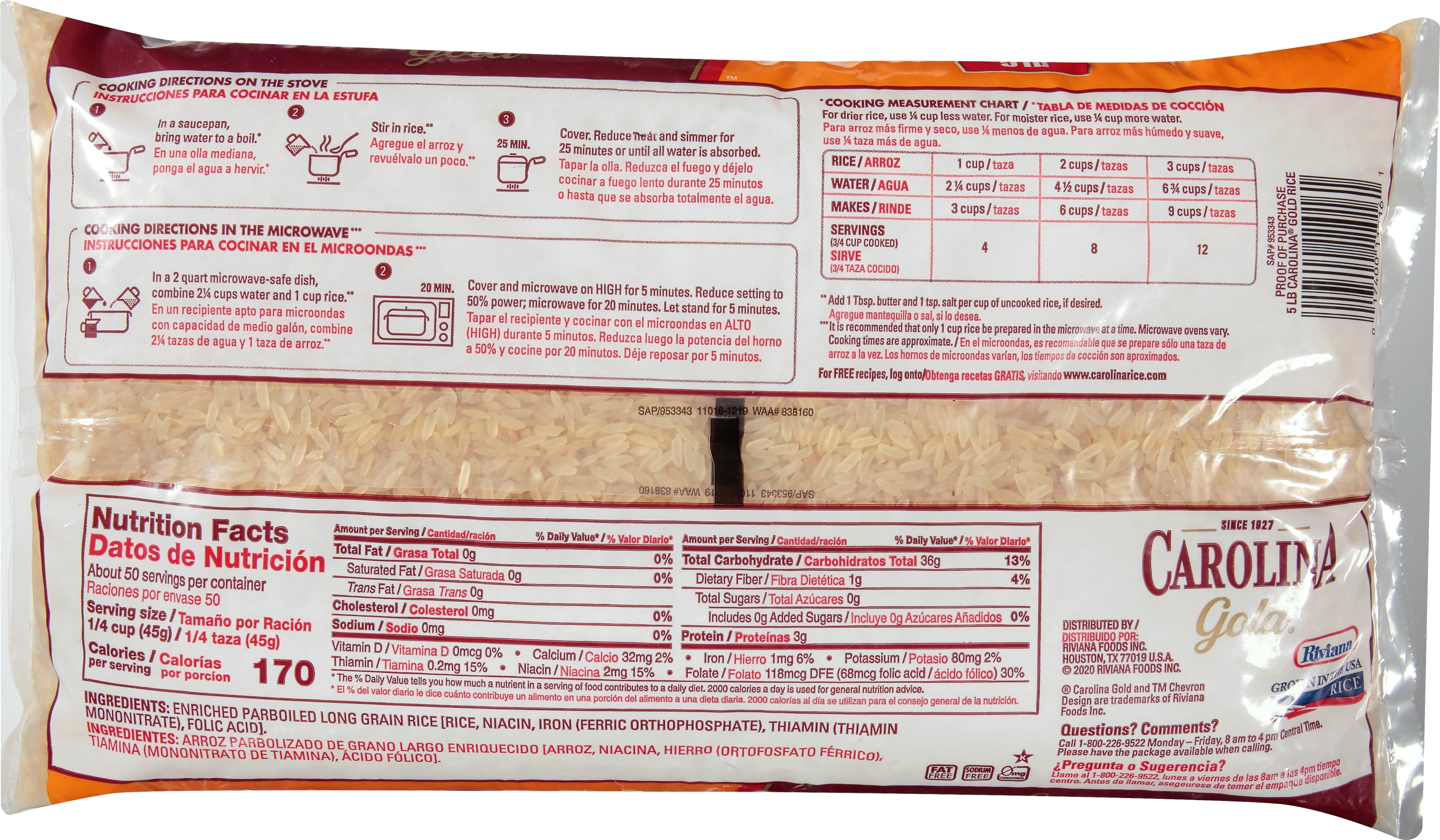 Carolina Gold Enriched Parboiled Rice, 5 lb Bag