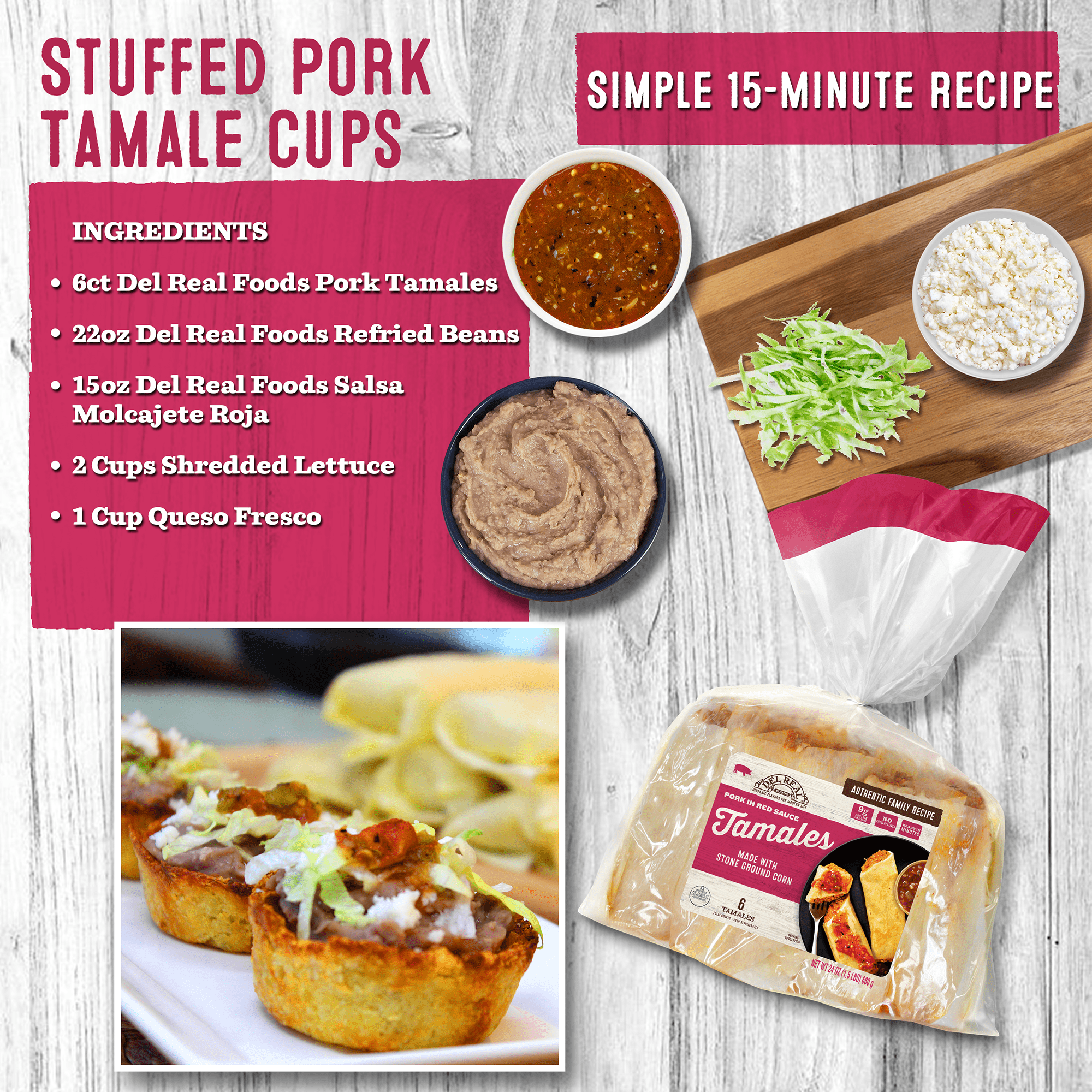 Del Real Foods Pork in Red Sauce Tamales, 24 oz (Fully Cooked)
