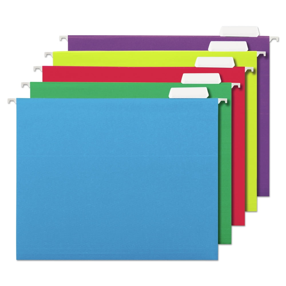 Deluxe Bright Color Letter Size 1/5-Cut Tab Hanging File Folders – Assorted (25/Box)