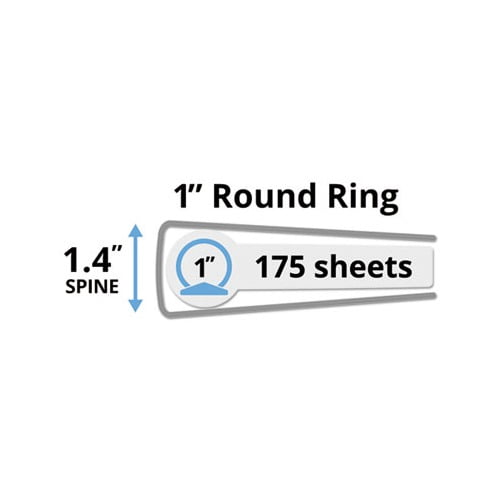 Quick reference guide: Use this Mini Durable Binder to organize paperwork like a pro. The round rings holds up to 175 sheets of paper and are perfect for address book inserts and contact sheets. You can also organize and secure loose and unpunched pages with two pockets on the front and back inside covers. An ID label holder on the spine makes content easy to identify at a glance. Binder Type: Ring Binder Style: Non-View Binder Size Capacity: 1" Binder Sheet Capacity: 175. Green : Contains a minimum of 46% post-consumer recycled content, 46% total recycled content.