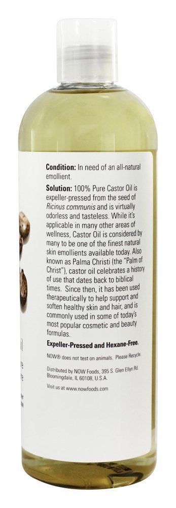 Condition: In need of an all-natural emollient. Solution: 100% Pure Castor Oil is expeller-pressed from the seed of Ricinus communisand is virtually odorless and tasteless. While it’s applicable in many other areas of wellness, Castor Oil is considered by many to be one of the finest natural skin emollients available today. Also known as Palma Christi (the "Palm of Christ"), castor oil celebrates a history of use that dates back to biblical times. Since then, it has been used therapeutically to help support and soften healthy skin and hair, and is commonly used in some of today’s most popular cosmetic and beauty formulas. NOW? Solutions is the next step in the evolution of personal care products. This comprehensive natural line encompasses anti-aging moisturizers and serums, bath and body gels, shampoos and conditioners, oral care, skin care, and essential oils. all of which are formulated with the finest functional ingredients from around the world. NOW? Solutions products avoid harsh chemicals and synthetic ingredients in all of our formulations, to provide a more natural product line.Now Foods – Castor Oil 16 oz (Pack of 2)