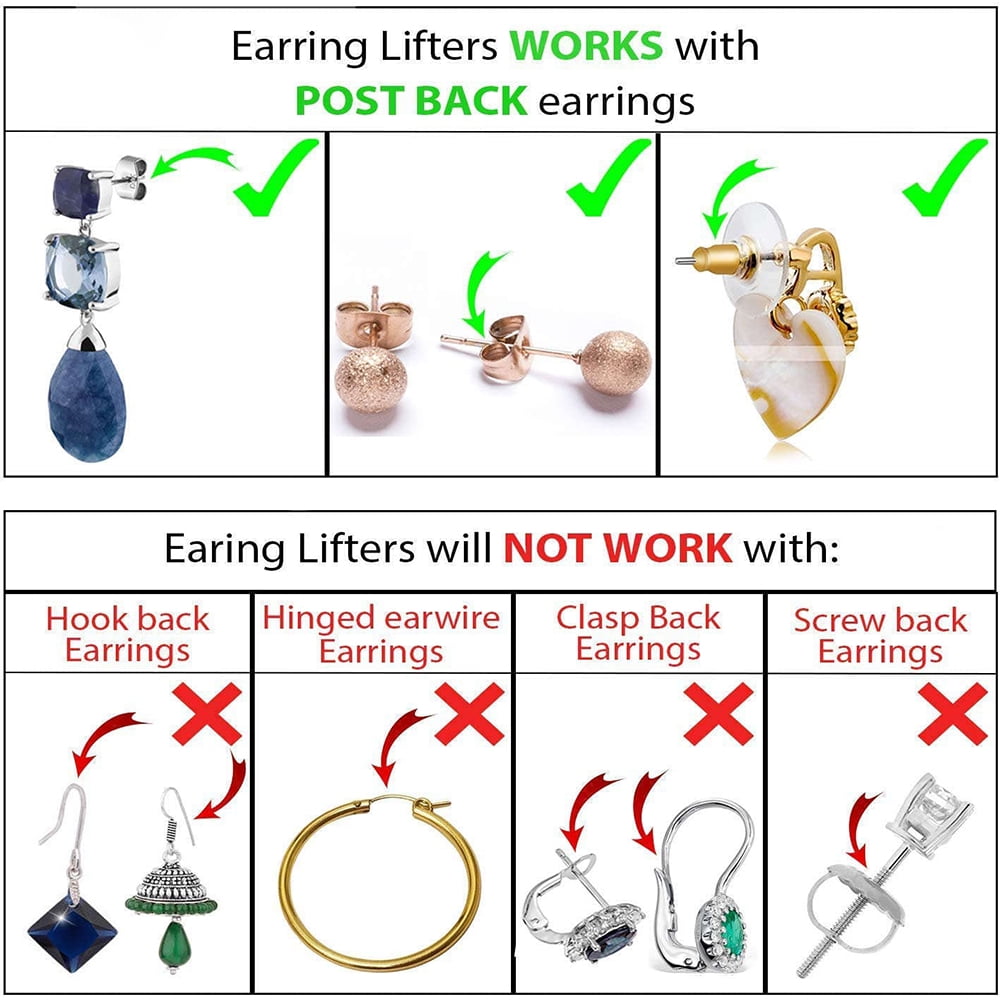 - PERFECT with FLYFUN Products – They designed to lift and support earrings so they’ll rest securely against your ears without drooping and fits all post earrings. Anchora Helps with bad piercings, stretched lobes and heavy earrings