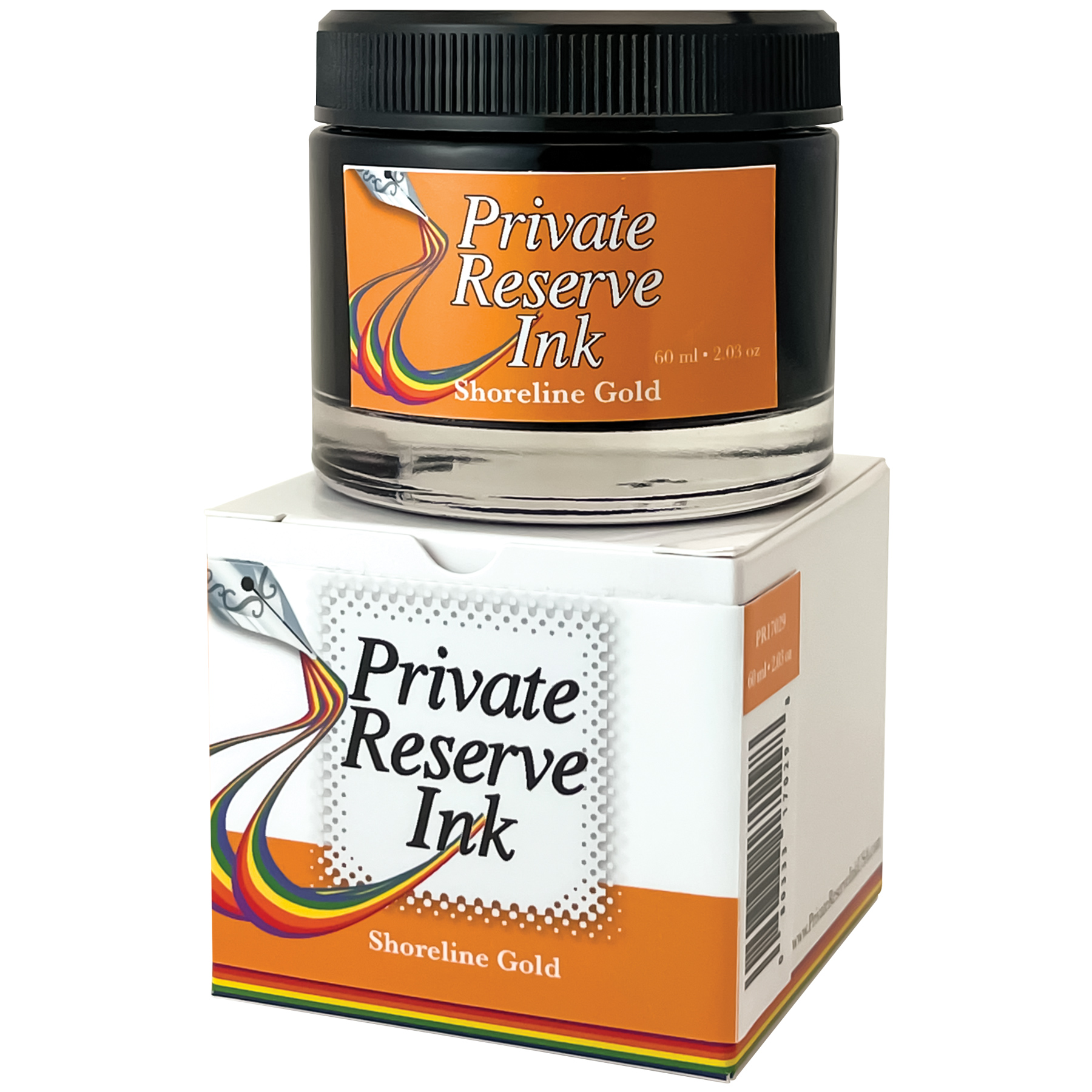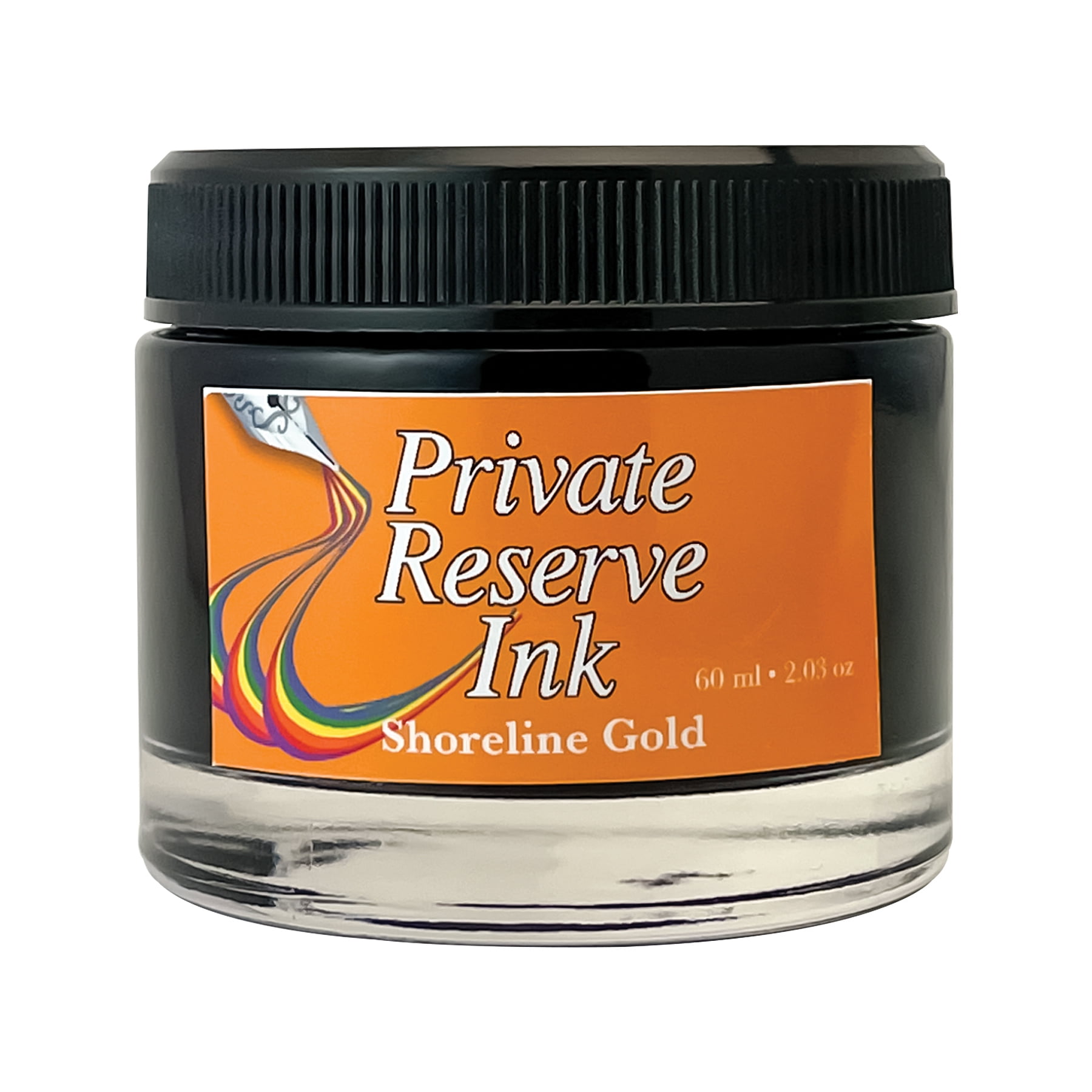 One Shoreline Gold 60ml Private Reserve Fountain Pen Ink Bottle. Made and Bottled in the USA. Available in over 20 different colors.