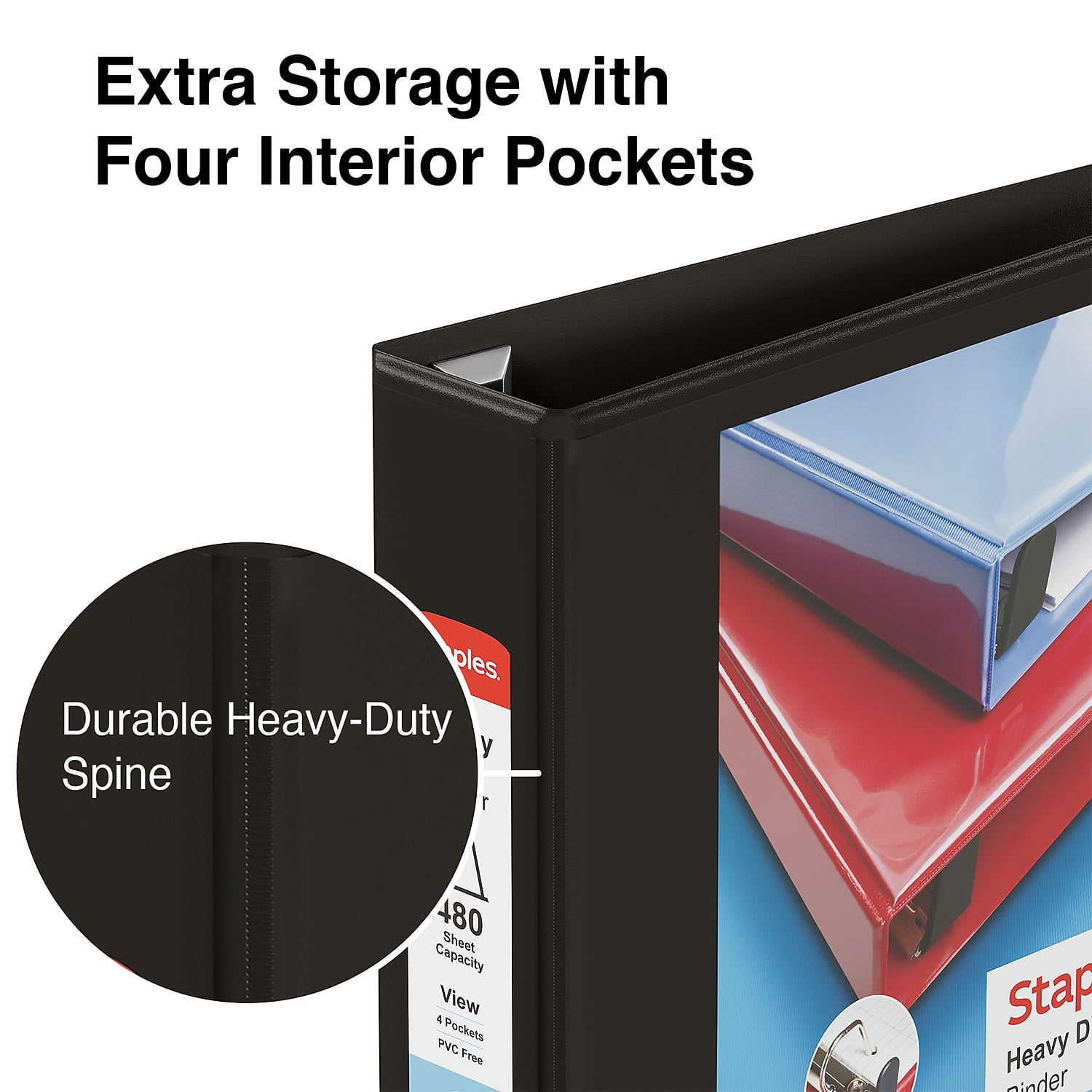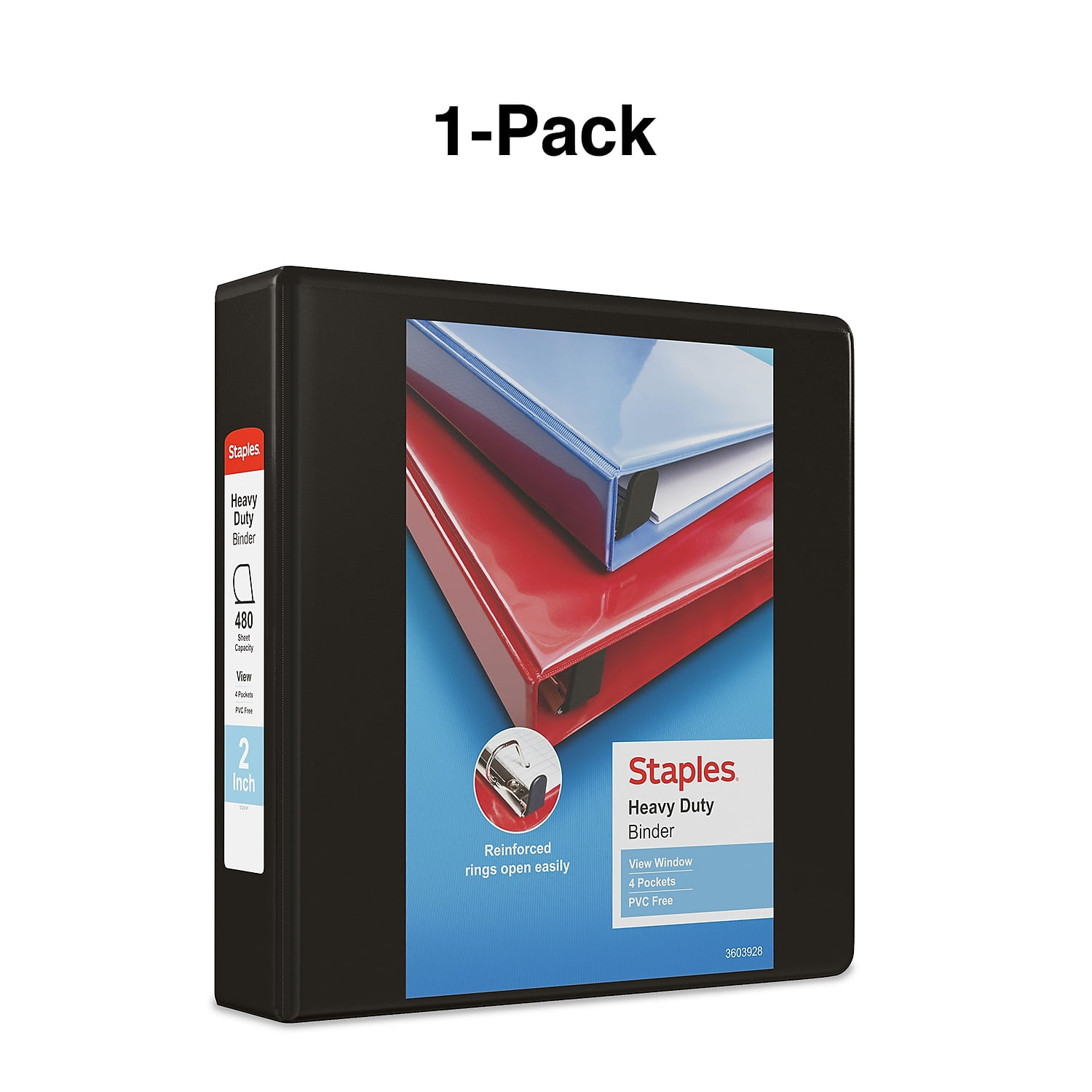 Staples Heavy Duty 2′ 3-Ring View Binder Black (24684) 82679