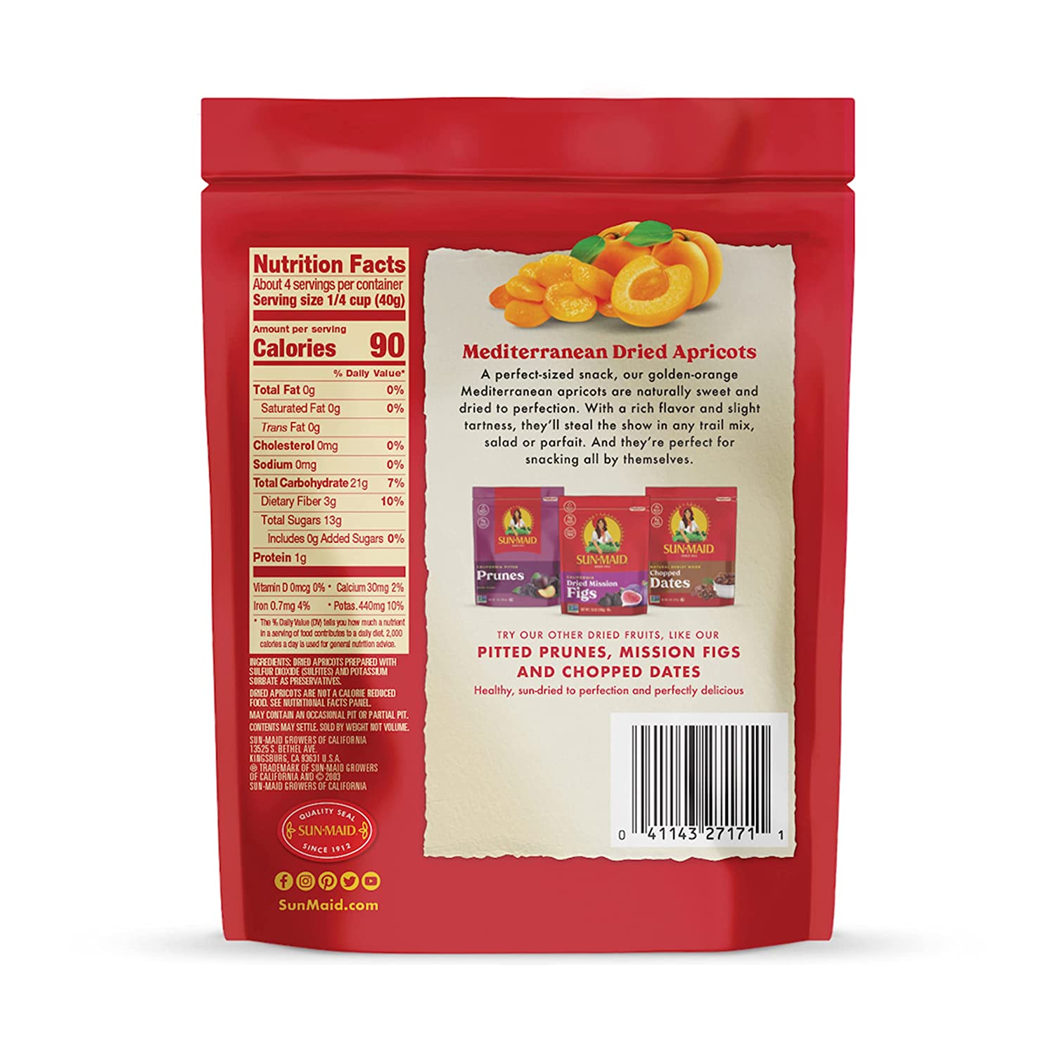 A perfect-sized snack, our golden-orange Mediterranean apricots are naturally sweet and dried to perfection. With a rich flavor and slight tartness, they’ll steal the show in any trail mix, salad or parfait. And they’re perfect for snacking all by themselves.