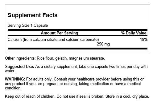 Get the calcium you need for total bone health with effective and economical Swanson Calcium Citrate Complex. Delivering 250 mg of calcium from calcium citrate and calcium carbonate in each serving, this easy-to-assimilate calcium combo is the perfect supplement for all your calcium needs.