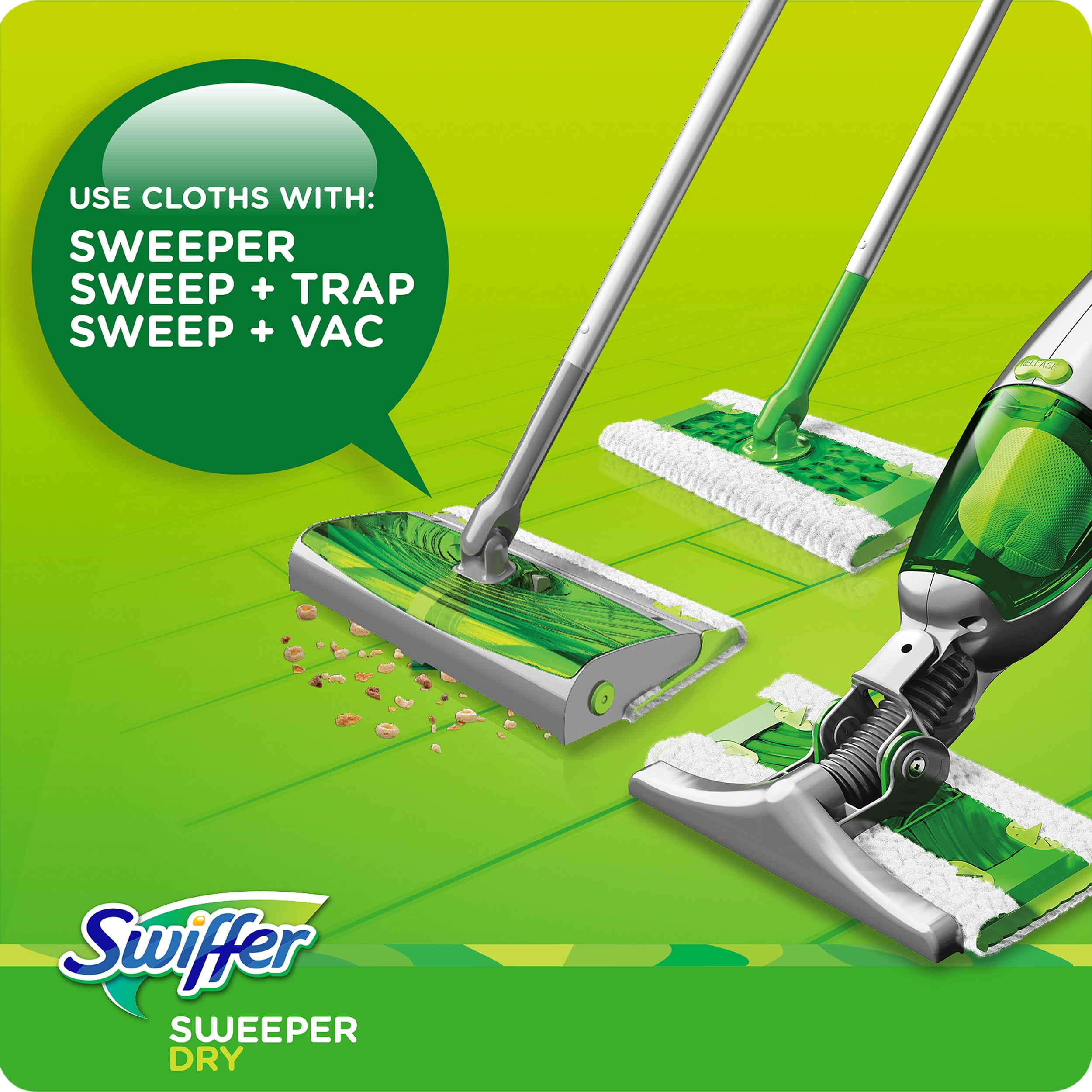 Swiffer Sweeper Multi-Surface dry sweeping cloth refills have deep textured ridges that TRAP + LOCK dirt, dust, hair & allergens* to keep your floors clean and free of debris. Use with Swiffer Sweeper, Swiffer Sweep+Vac and Swiffer Sweep+ Trap. *common inanimate allergens from cat and dog dander & dust mite matter
